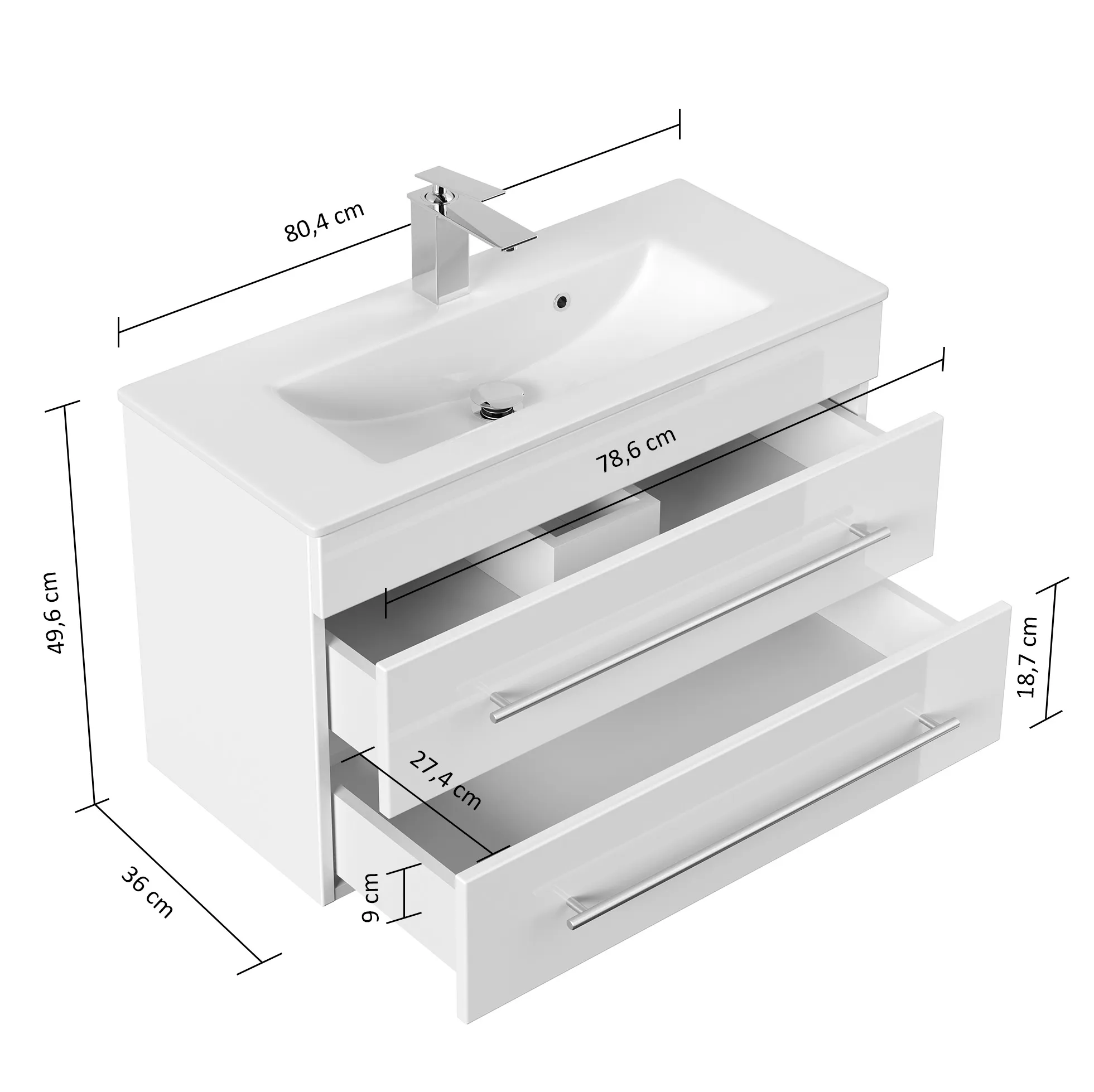 Badmöbel mit Keramik Waschbecken (B/H/T) 80,4/49,6/36cm