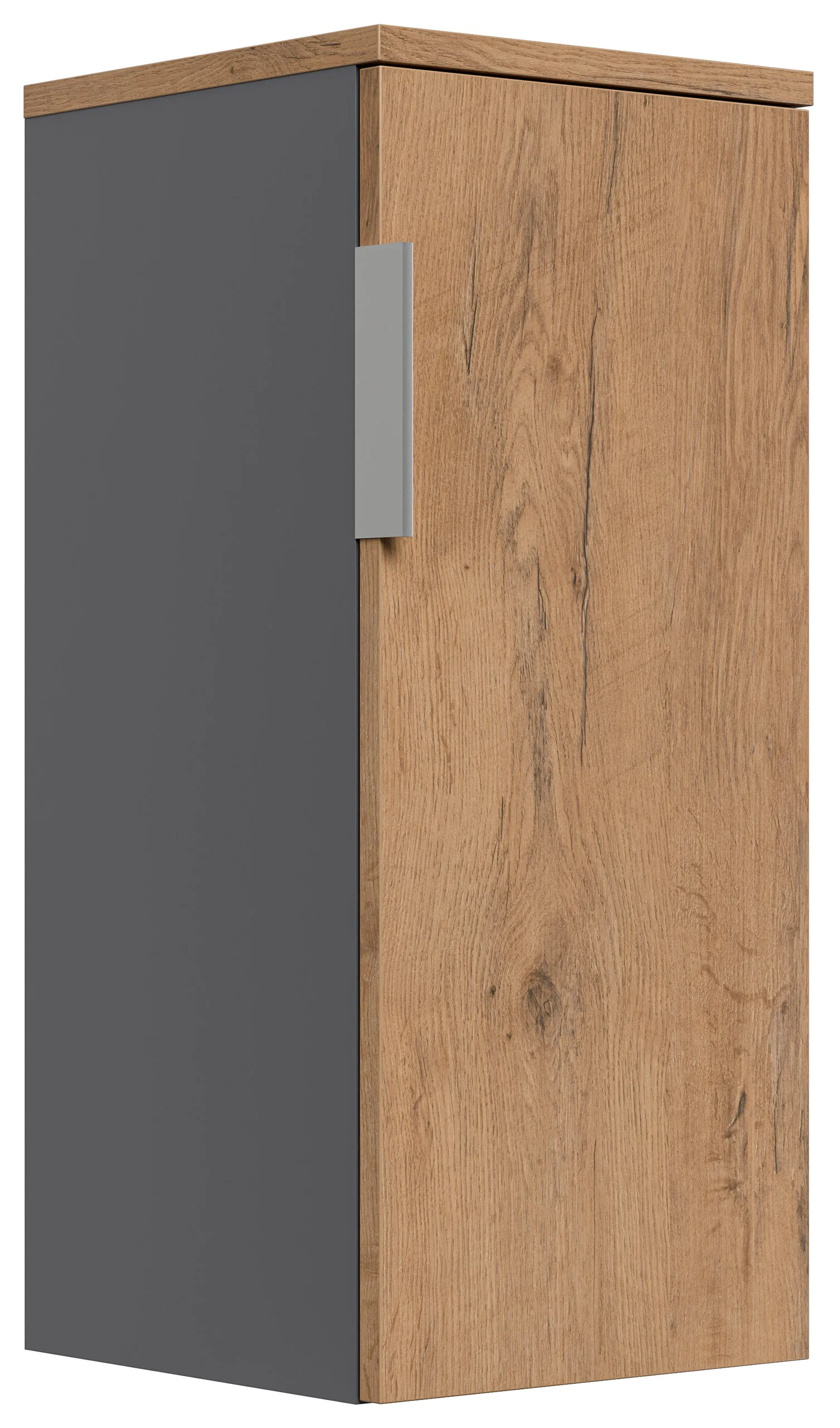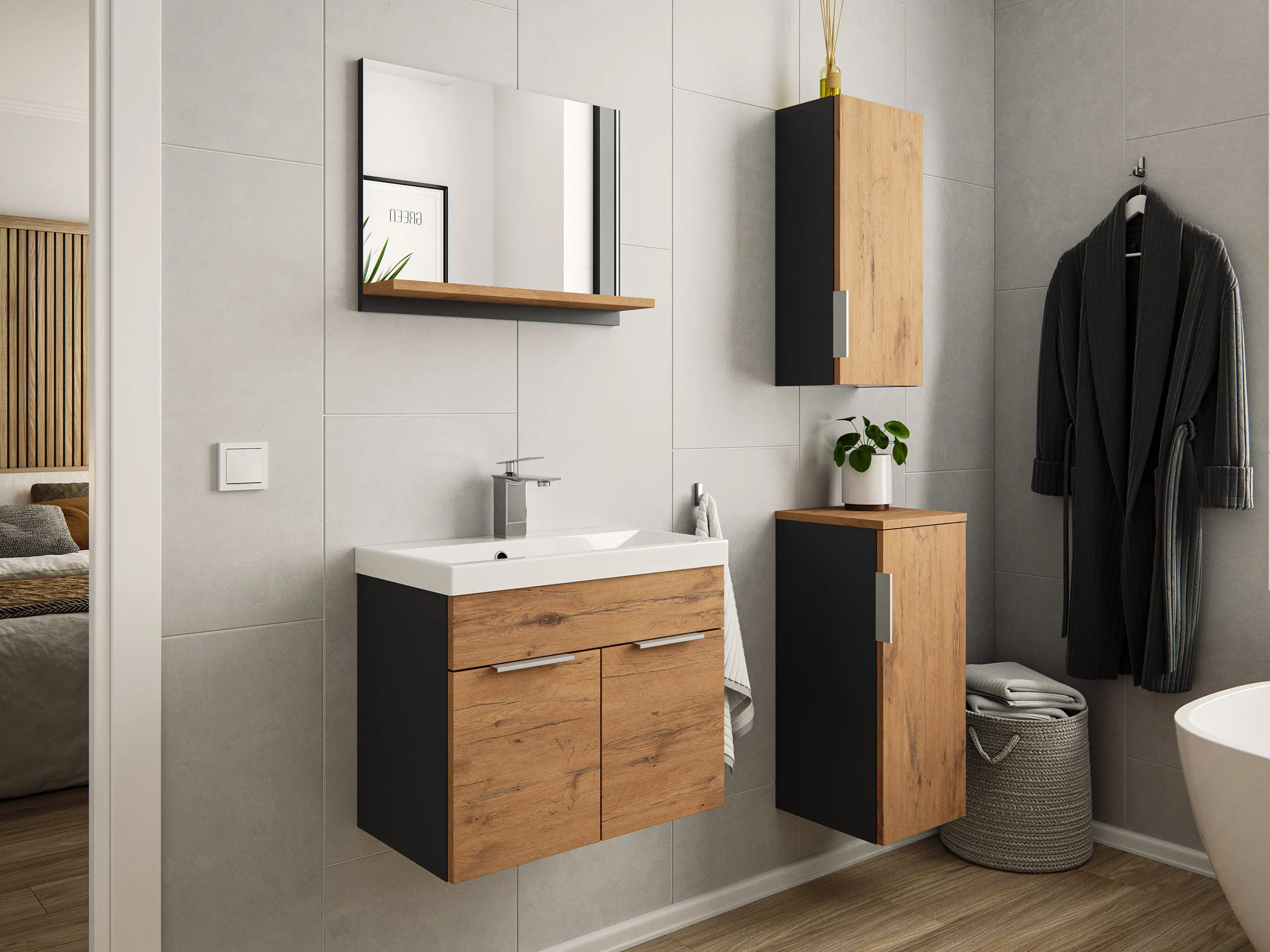 Badmöbel-Set Slimline Lago 4tlg mit Spiegel Oak & Midischränke / grafit matt