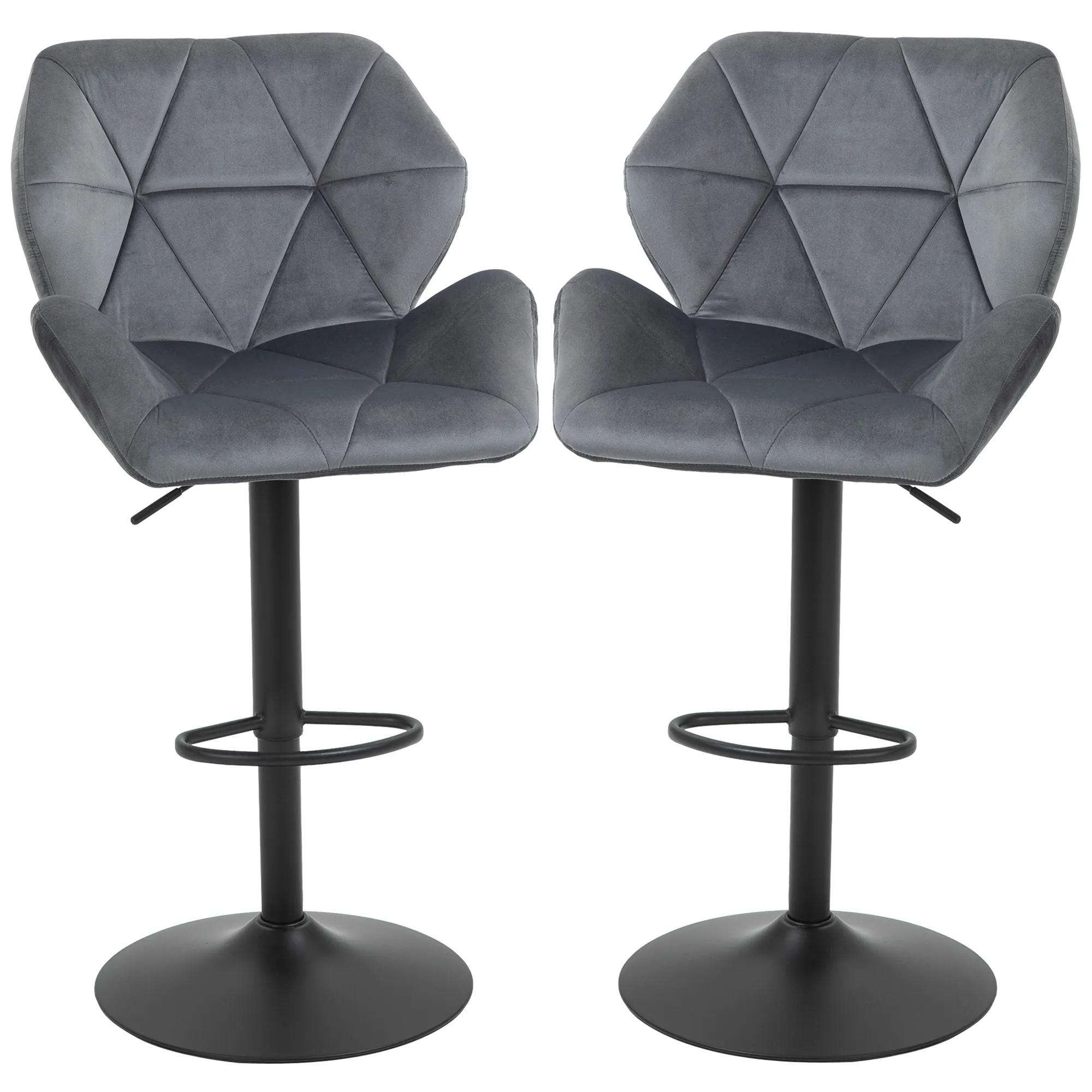 Barhocker 2er Set, Gepolstert Barstuhl mit Metallgestell, Lehne, Samtoptik, Höhenverstellbar 360° Drehbar