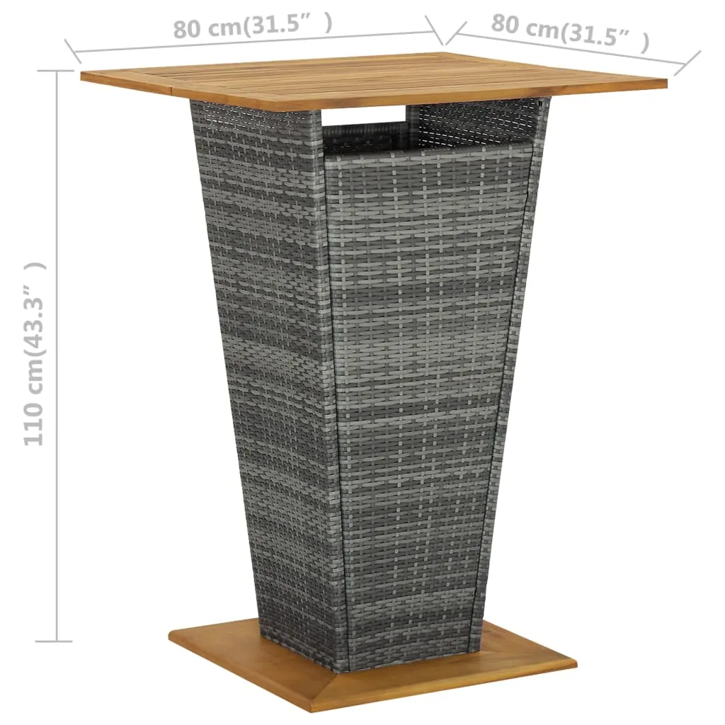 Bartisch Grau 80x80x110 cm Poly Rattan und Massivholz Akazie
