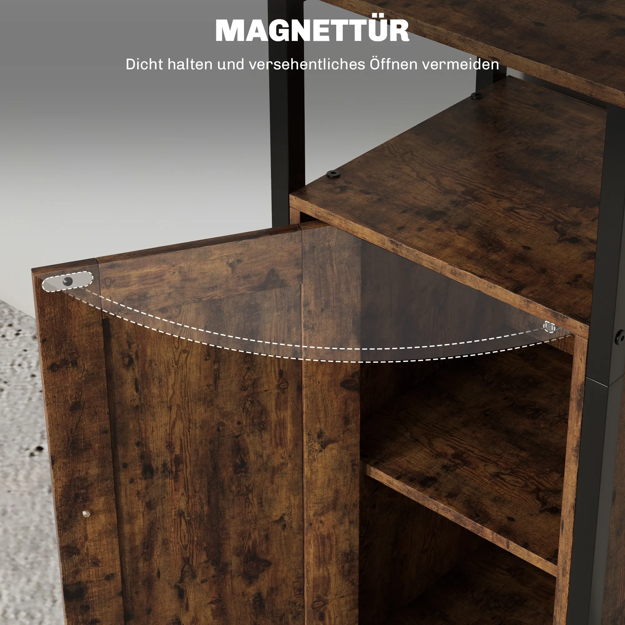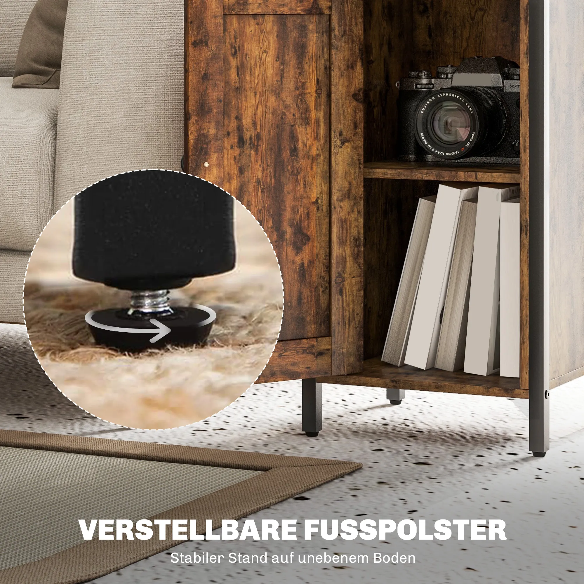 Erlebe den Charme dieses Beistelltisches, der praktische Funktionalität mit industriellem Stil kombiniert. Das großzügige Schrankfach mit einem zweilagigen offenen Oberregal und einem innenliegenden, dreistufig verstellbaren Regal eignet sich hervorragend, um Alltagsgegenstände diskret zu verstauen. Die magnetische Tür und der runde Griff verleihen ihm eine elegante Note, perfekt als modischer Beistelltisch oder schmaler Nachttisch in jedem behaglichen Winkel.