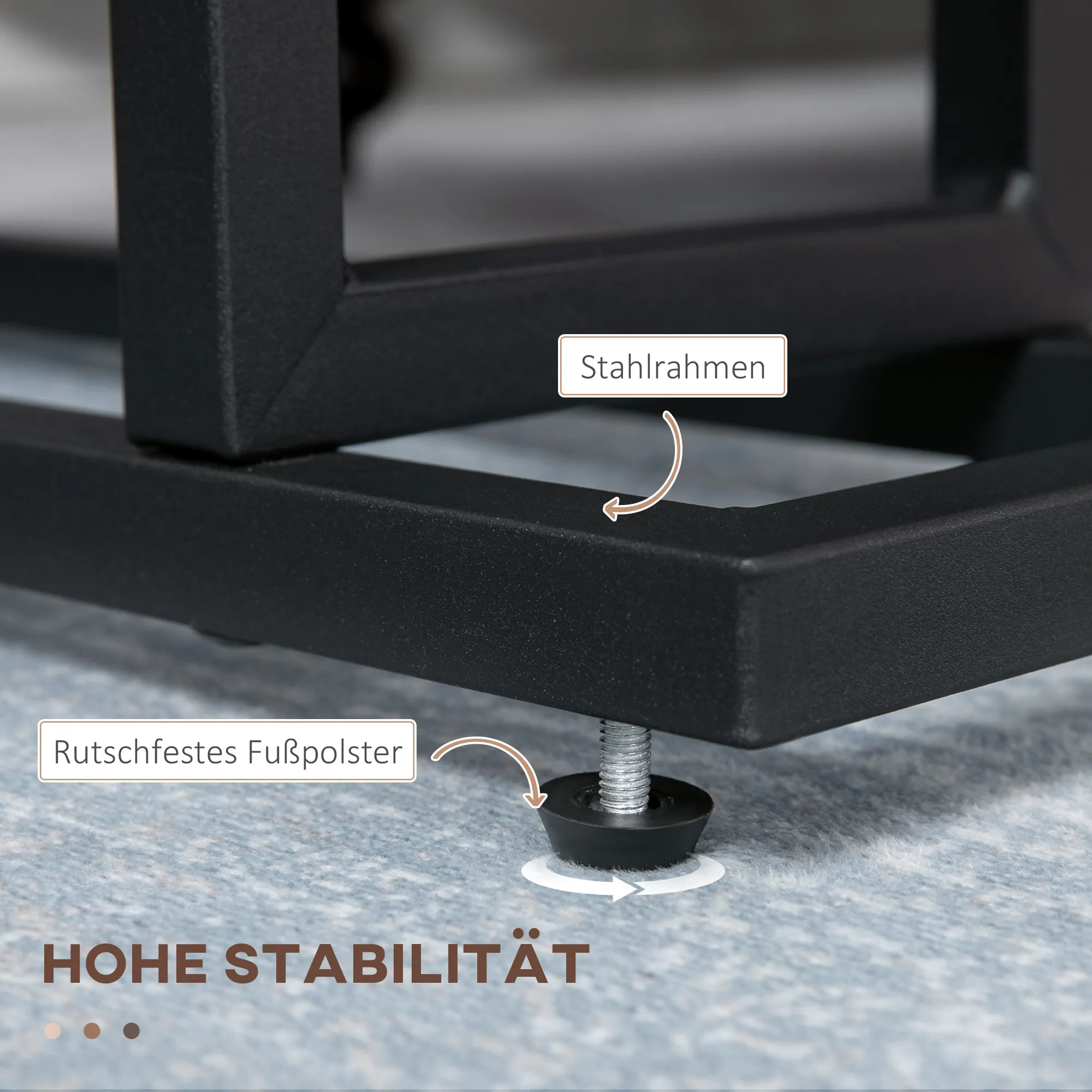 - Die robusten Stahlbeine sorgen für sicheren Halt