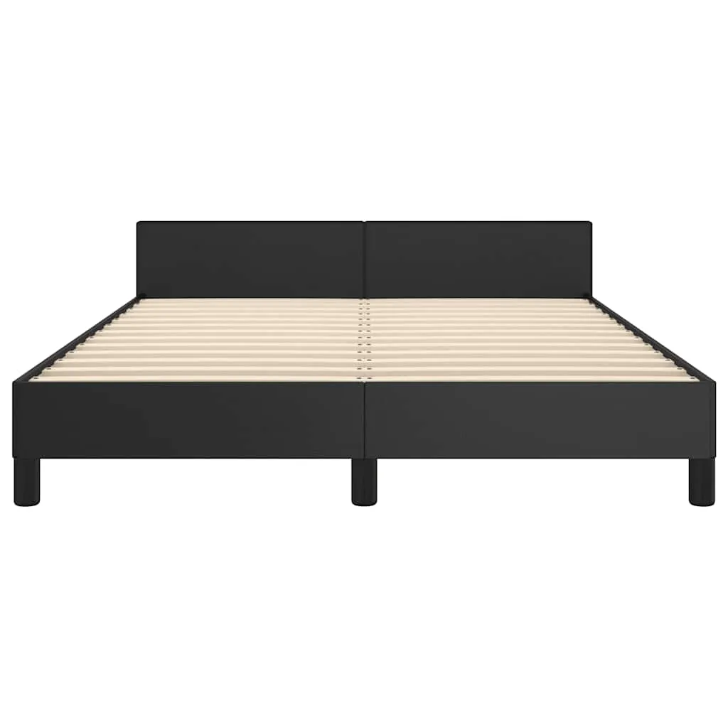 Bettgestell mit Kopfteil 197x146x50 cm Schwarz Kunstleder Massivholz