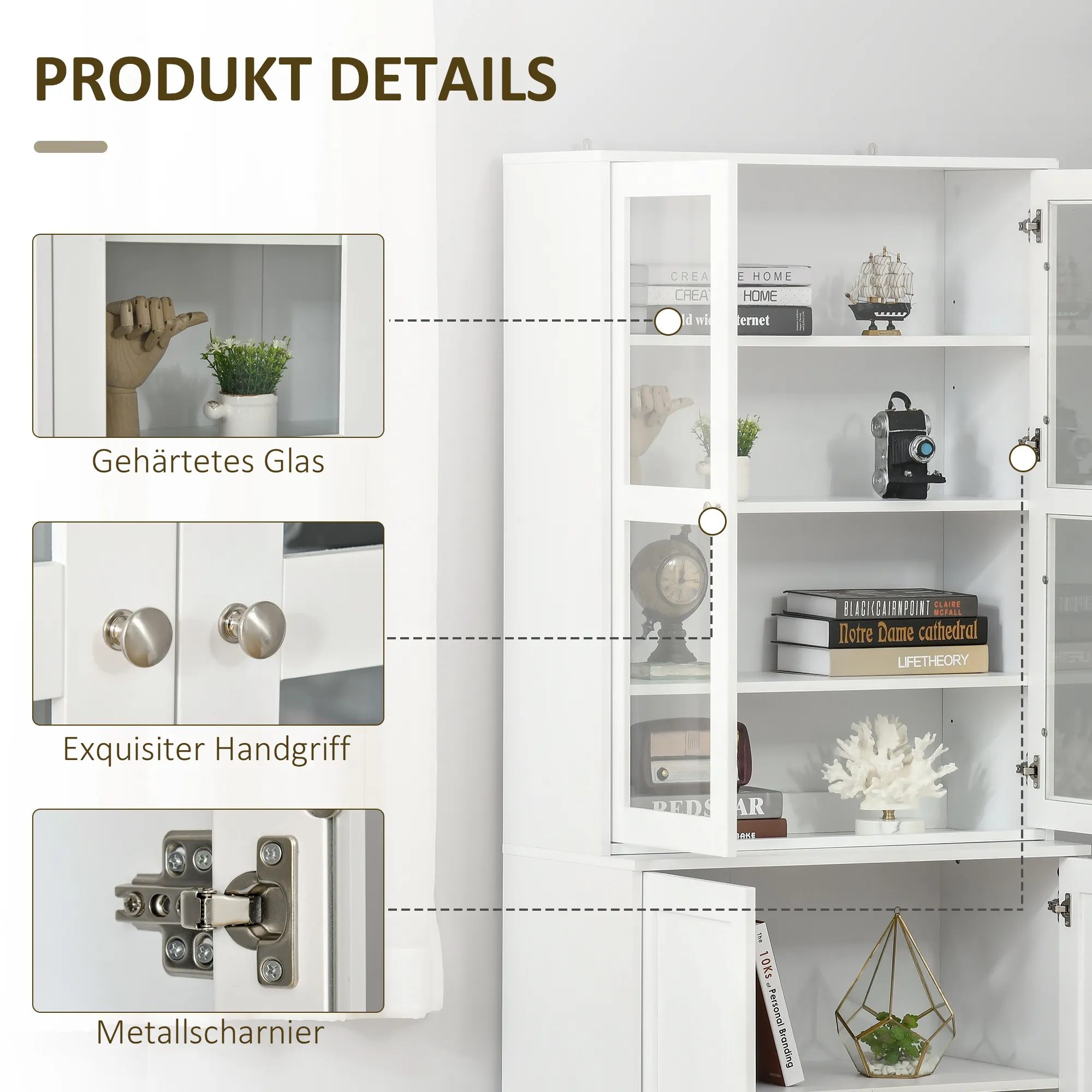 - Die Regalböden des oberen Schranks können verstellt werden, um verschiedene Aufbewahrungsbedürfnisse zu erfüllen