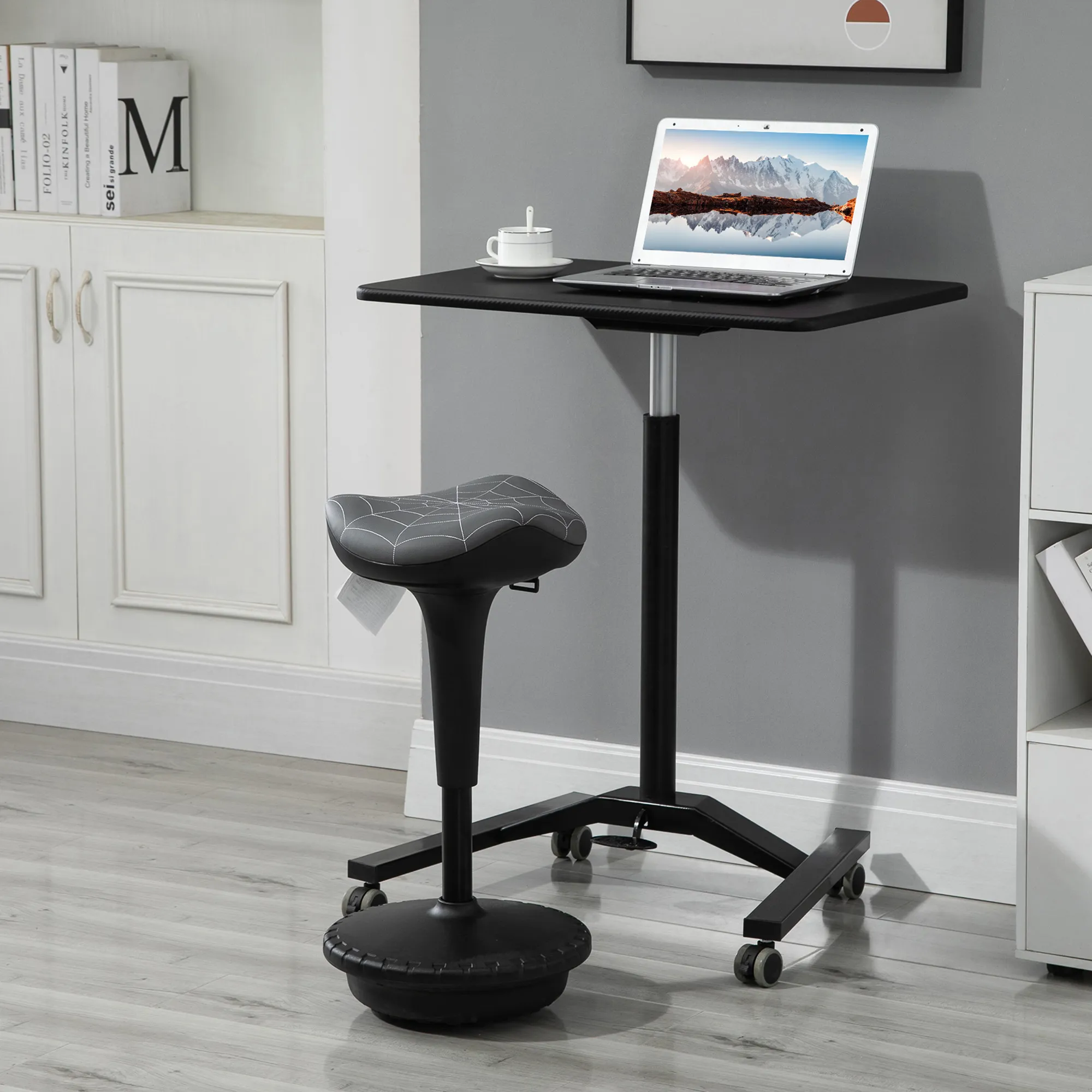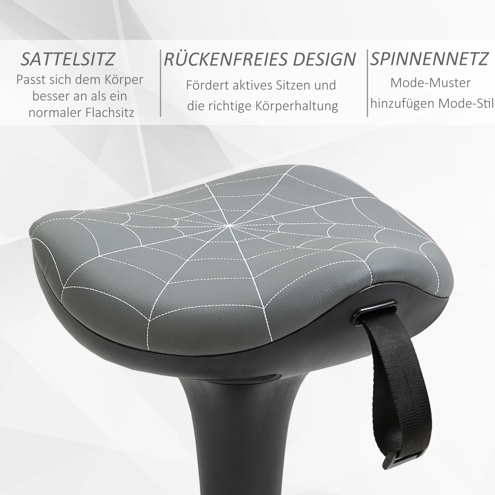 Verbessern Sie Ihre Sitzhaltung mit unserem innovativen Stehstuhl! Dieser hohe ergonomische Hockerer möglicht verschiedene Sitzarten: von klassischem Sitzen bis zum Schaukeln, Drehen, Kippen, Lehnen oder Stehen. Dank des Gaslifts und der rutschfesten Basis bleibt der Wackelhocker stabil, während er perfekt angepasst wird. Der Sattelsitz und das rückenlose Design unterstützen eine dynamische Sitzweise und eine gute Haltung! Ideal für Personen, die viel Energie haben oder leicht ablenkbar sind.