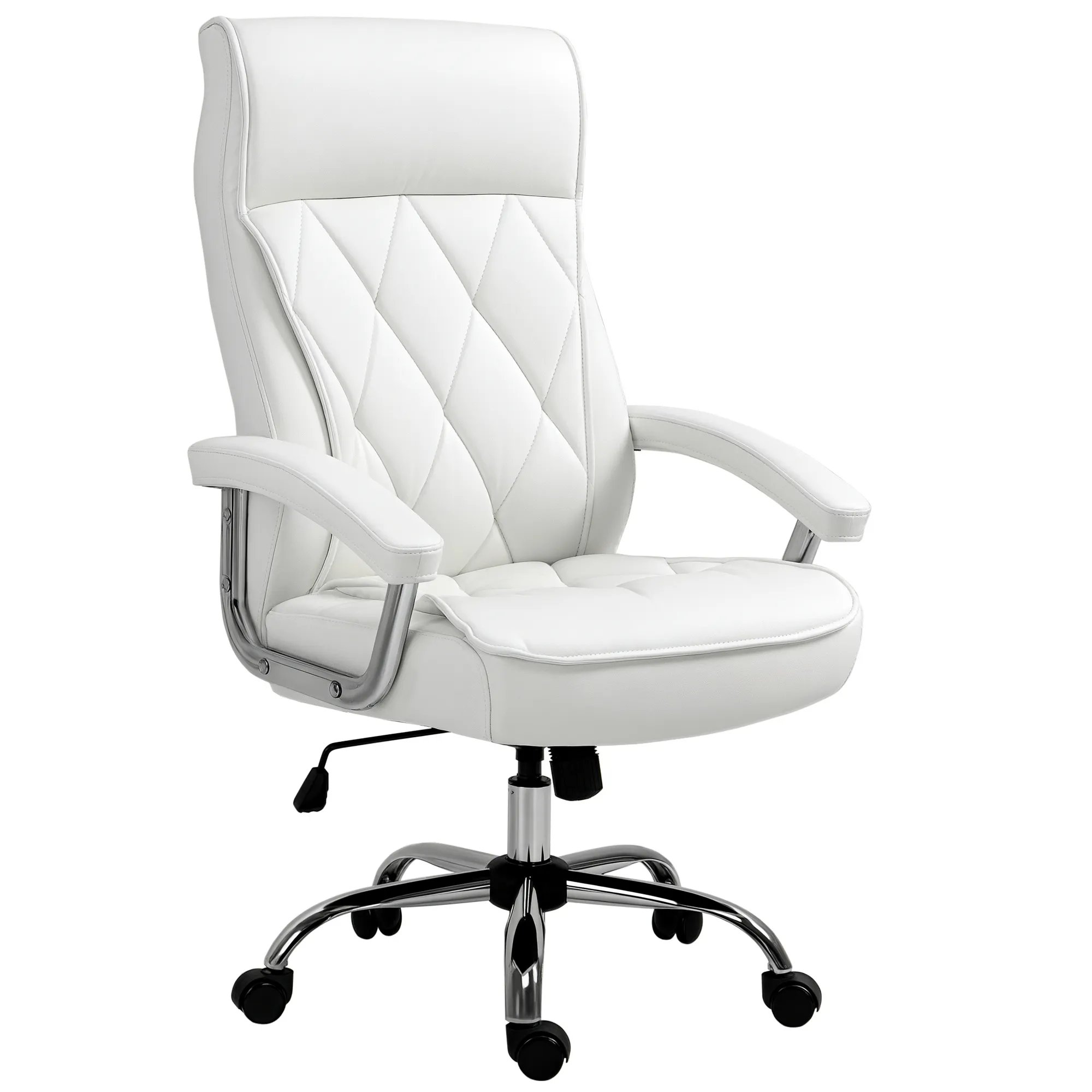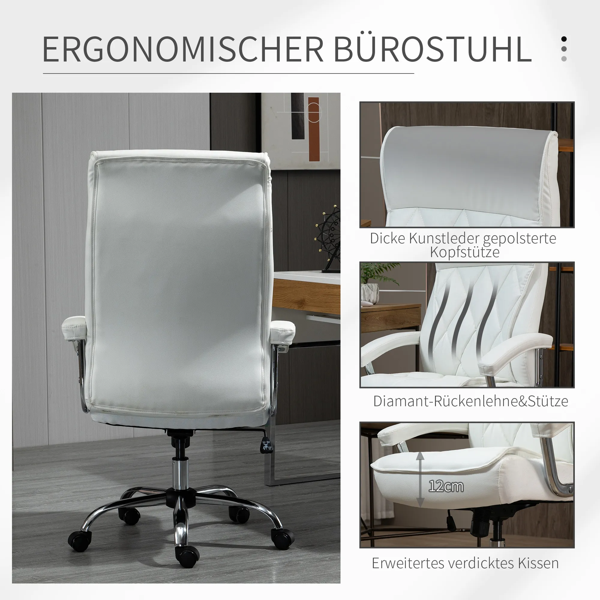 Bürostuhl, ergonomischer Schreibtischstuhl, höhenverstellbarer Drehstuhl mit Wippfunktion, Rautenmuster, Kunstleder, gepolsterter Chefsessel, Weiß