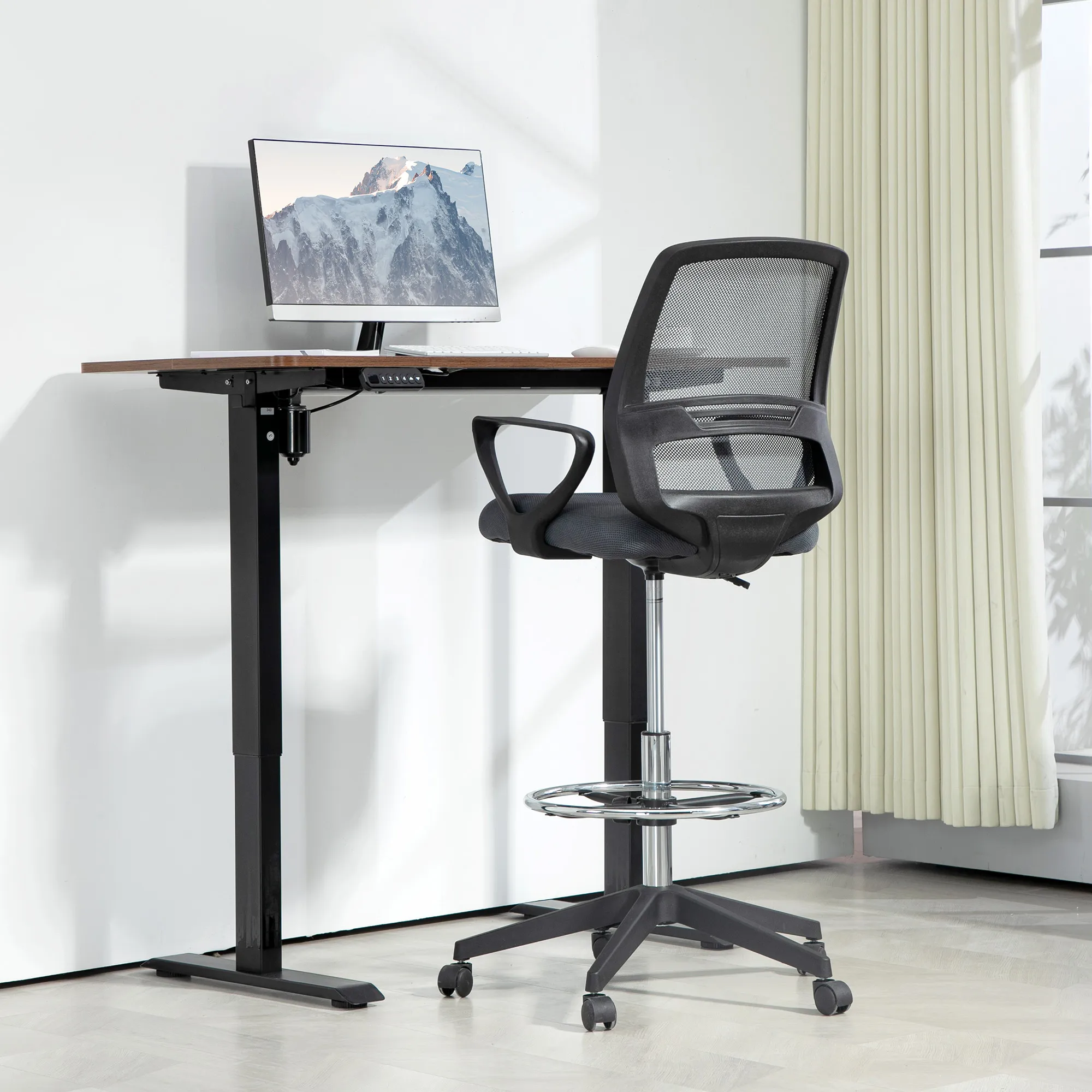 Bürostuhl Ergonomischer Schreibtischstuhl mit Armlehnen und Verstellbarer Fußring Netzbespannung Grau