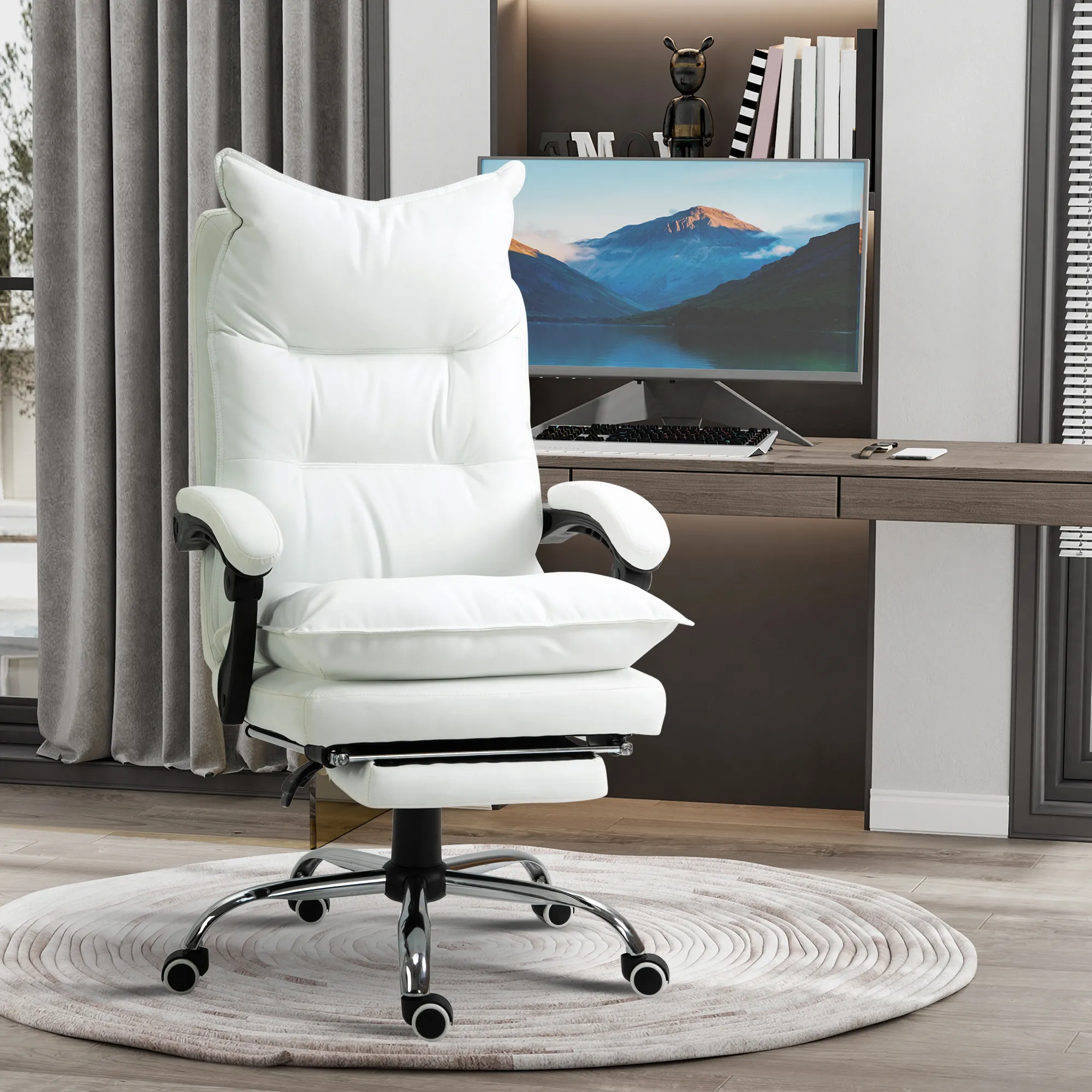 Bürostuhl mit Liegefunktion, ergonomisch höhenverstellbar mit Fußstütze, gepolstert, bis 135 kg belastbar, 66 x 72 x 122-130 cm, Weiß
