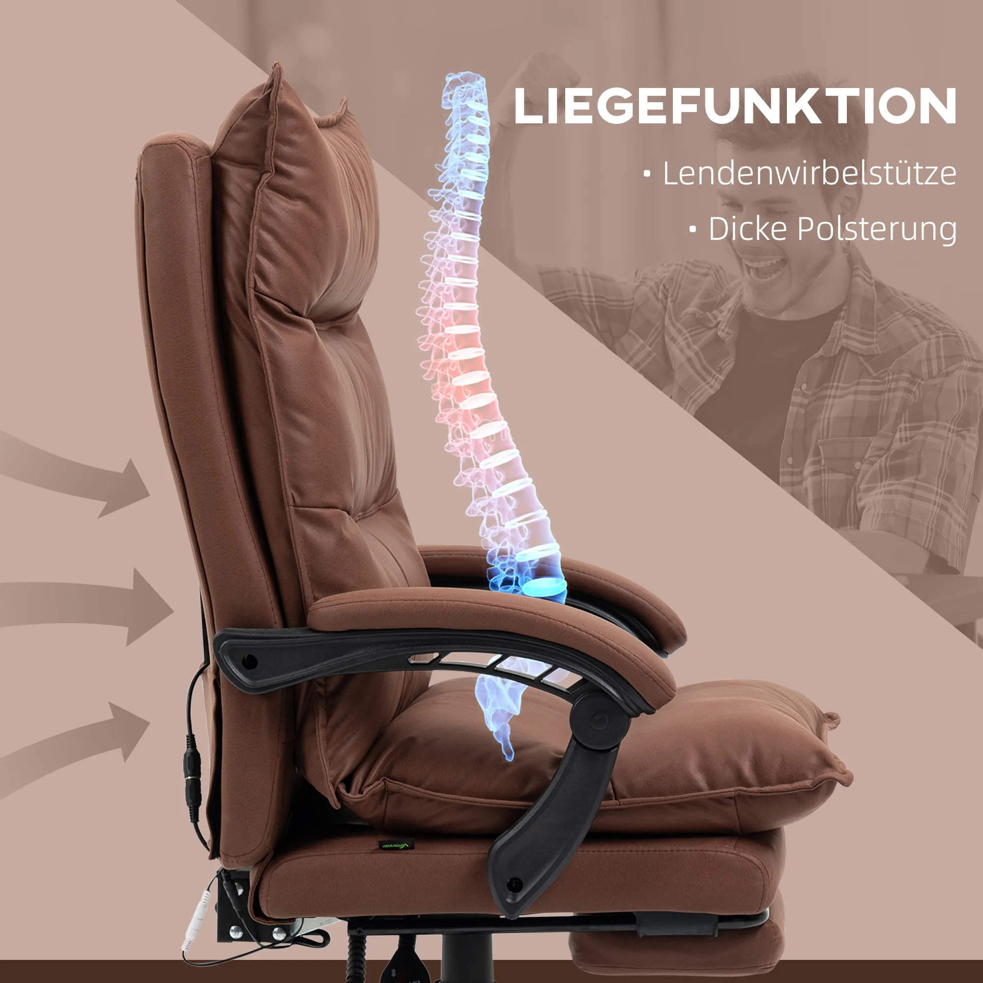Bürostuhl mit Massage- und Heizfunktion, Fußstütze, verstellbar, bis 120 kg, Braun