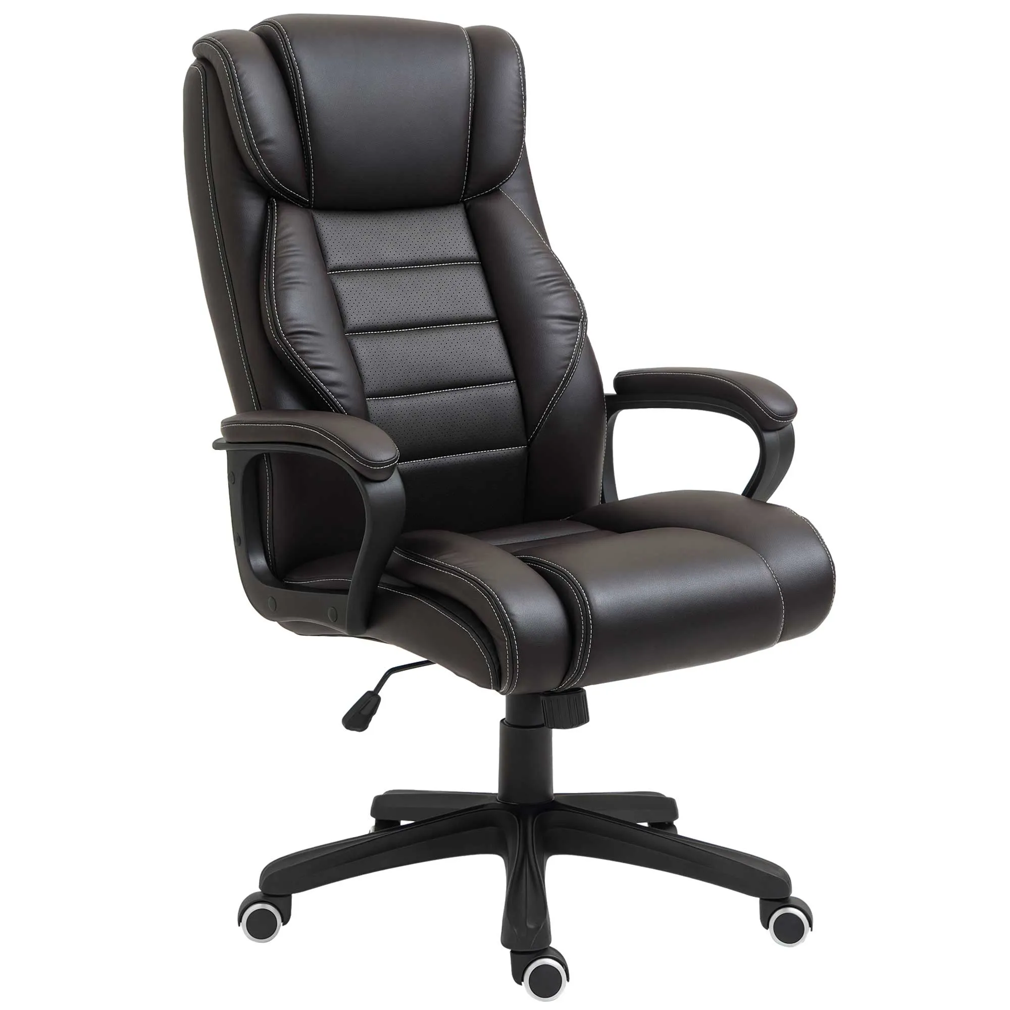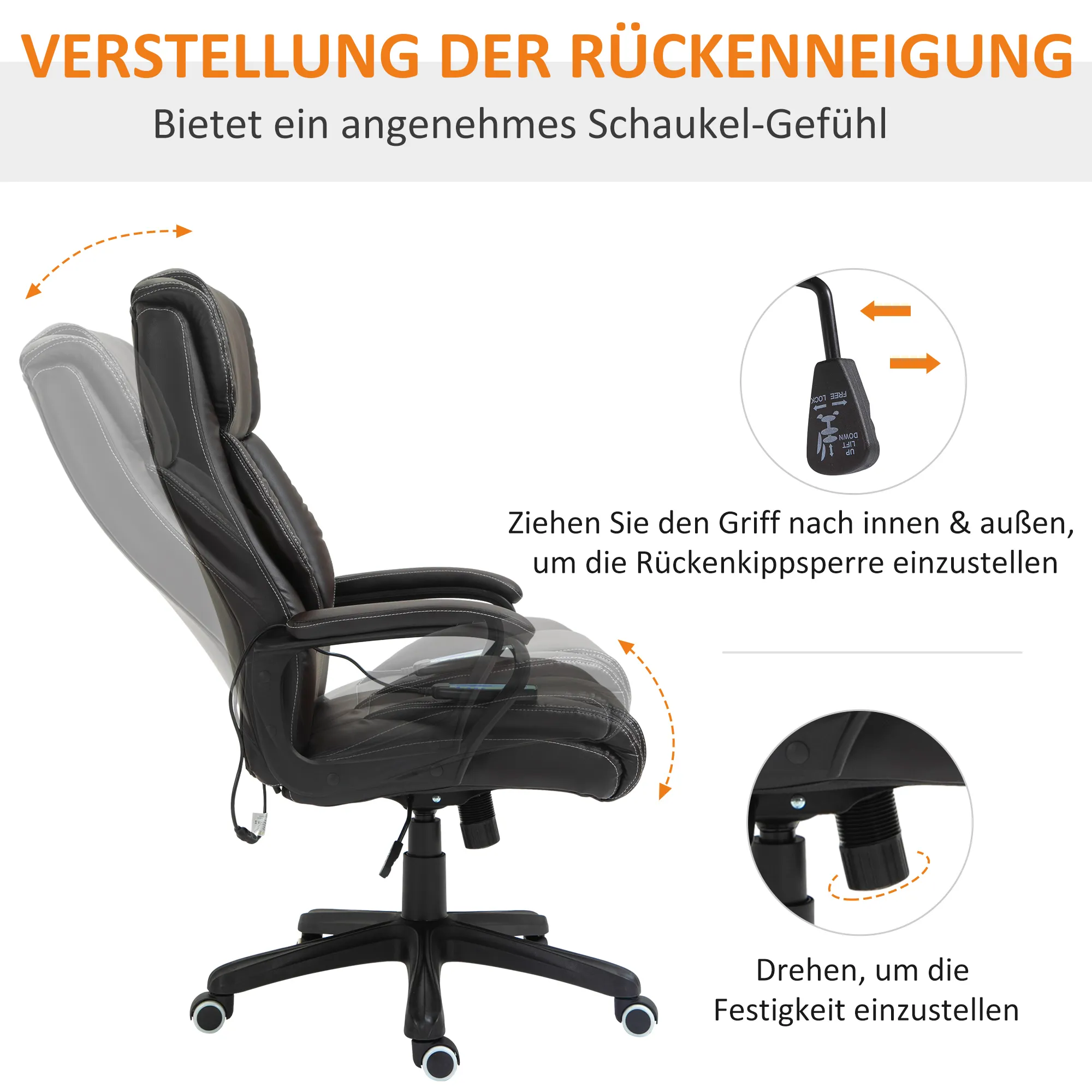 Bürostuhl mit Massagefunktion, höhenverstellbarer Chefsessel, ergonomischer Drehstuhl, 6 Vibrationspunkte, Braun