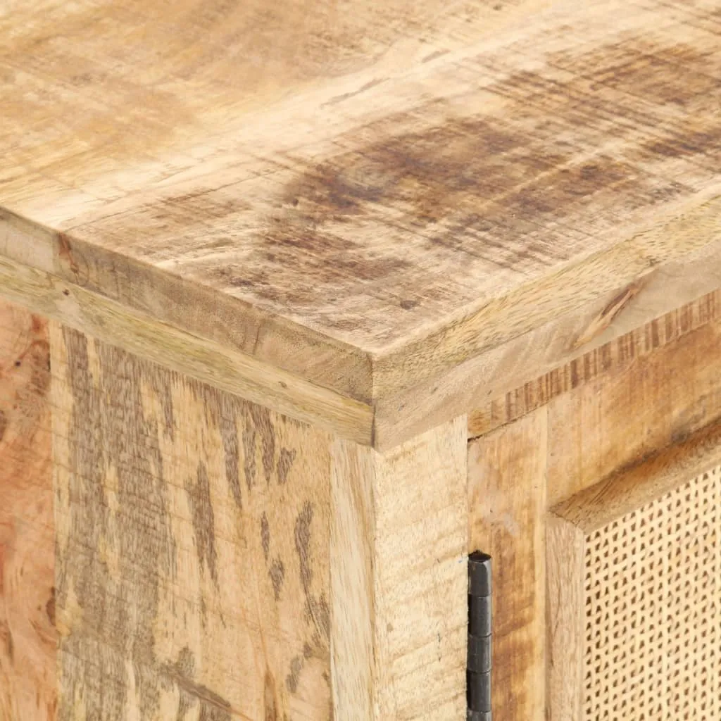 - Material: Massives Mangoholz mit natürlichem Finish, Naturgeflecht