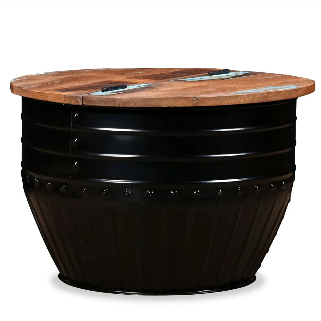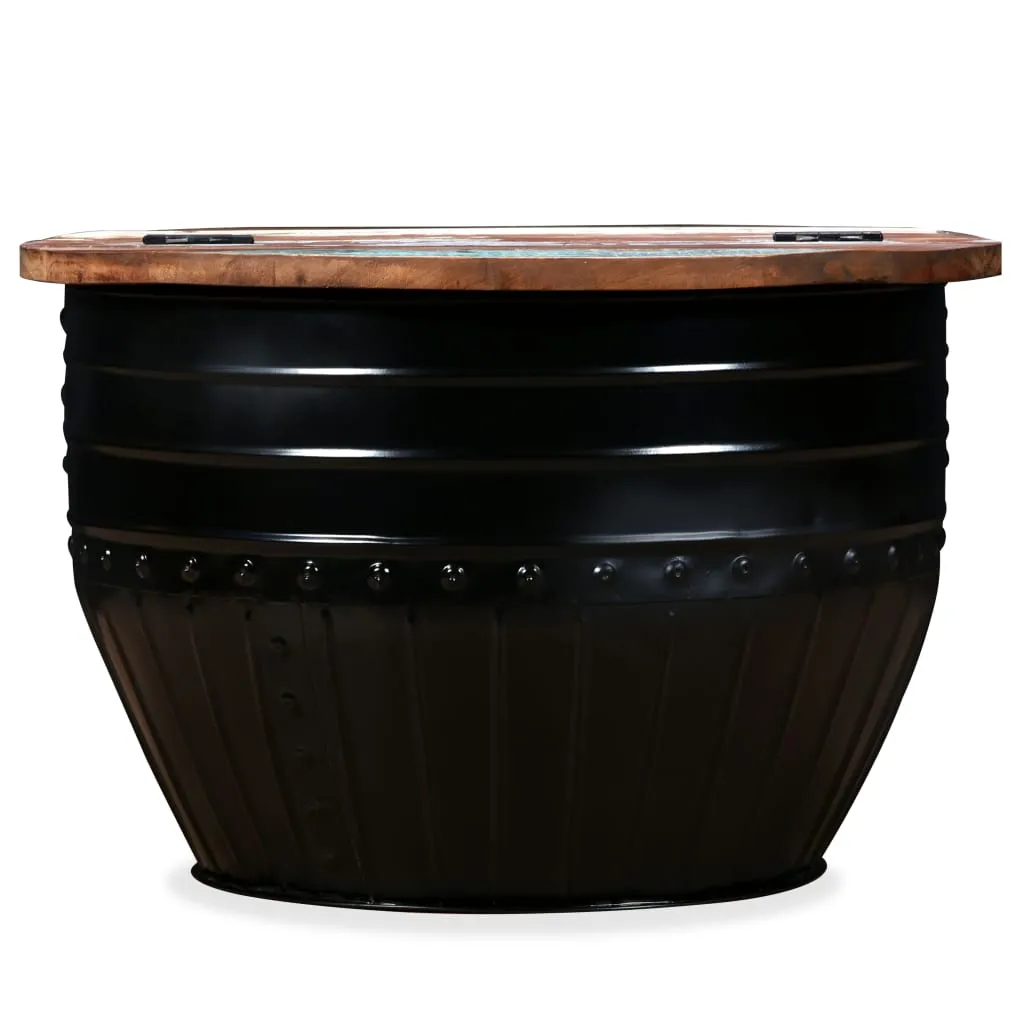 Couchtisch Altholz Massiv Schwarz Trommelform