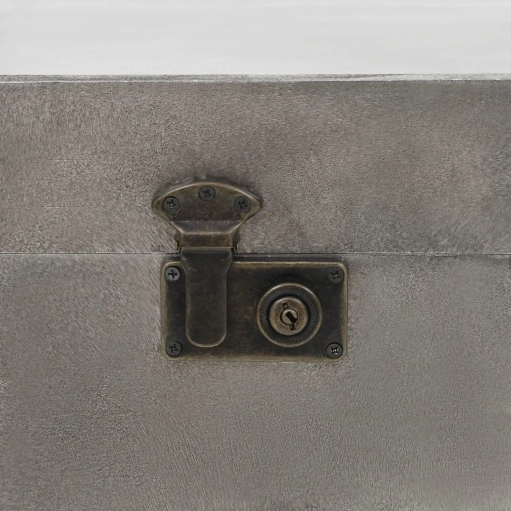 Mit seinem spektakulären Vintage-Design ist dieser einzigartige Couchtisch in Form eines Reisekoffers eine stilvolle Bereicherung für dein Interieur. Er lässt sich auch als Beistelltisch oder Ablagetisch verwenden. Dieser haltbare und formschöne Tisch besteht aus MDF mit Aluminiumbeschichtung, ist mit einer Auskleidung aus Vliesstoff versehen und verfügt über robuste Stahlbeine, die zu seinem rustikalen Charme beitragen. Die Tischplatte bietet den idealen Platz für Getränke, Vasen, Topfpflanzen, Obstkörbe oder andere Dekoartikel. Die Truhe verfügt über zwei Innenfächer, die reichlich Platz für Decken, Bücher, Zeitschriften, Fernbedienungen und andere Sachen bieten, die du außer Sicht, aber dennoch griffbereit halten möchtest. Dank der weichen und komfortablen Griffe lässt sich der Truhentisch bei Bedarf mühelos umstellen. Die Montage dieses Artikels ist einfach.