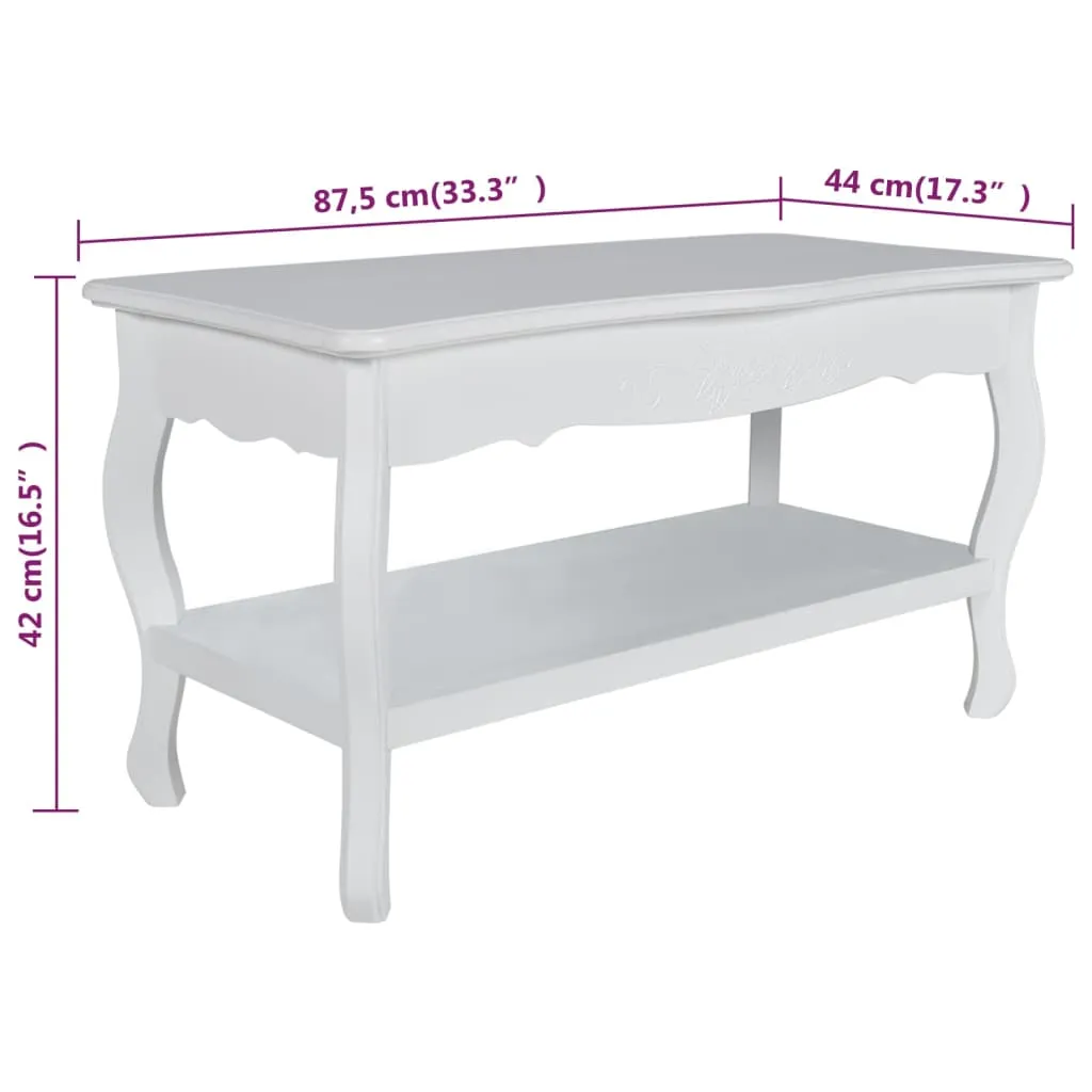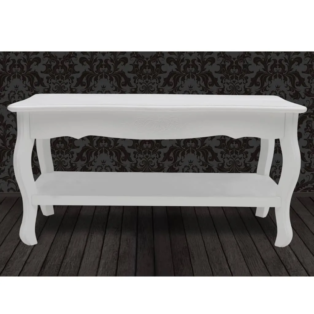 Dieser Couchtisch mit Ablage weist ein trendiges Design auf und ist in Weiß lackiert. Durch die feine Handwerkskunst wertet er dein Wohnzimmer sofort auf. Unabhängig davon, ob du nach einem Couchtisch für Getränke oder andere Alltagssachen oder einem Beistelltisch mit Stauraum suchst, dieser Tisch erfüllt jede Erwartung. Auf der Ablage lassen sich Bücher, Zeitschriften und andere Sachen kunstvoll aufbewahren, während des moderne Design den französischen Provinzstil in deine Inneneinrichtung bringt. Aus hochwertigem, massivem Kiefernholz gefertigt, ist dieser Couchtisch auf Langlebigkeit ausgelegt. Hinweis: Da diese Möbel aus Holz gefertigt und weiß lackiert sind, können sie kleine Makel aufweisen.