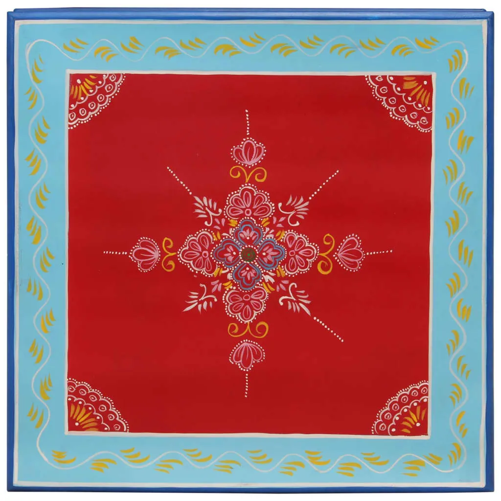 Dieser Couchtisch aus Holz mit reichen handgemalten Verzierungen ist ein echter Blickfang für dein Wohnzimmer. Mango-Massivholz: Massives Mangoholz ist ein robustes, tropisches Hartholz, aus dem sich robuste Möbel herstellen lassen. Seine optisch ansprechende Holzmaserung macht jedes Möbelstück zu einem Unikat. Aus massivem Mangoholz gefertigt, ist der Sofatisch robust und langlebig..Handbemaltes Design: Der Beistelltisch verfügt über umfangreiche handgemalte dekorative Details, die deinem Raum etwas Wärme und Eleganz verleihen.Robuste Tischplatte: Die robuste Tischplatte bietet den perfekten Platz für Getränke, Snacks und einige Dekoartikel.