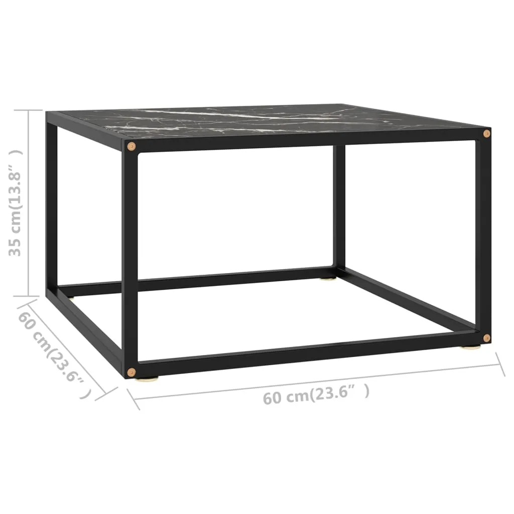 Couchtisch Schwarz mit Schwarzem Glas in Marmor-Optik 60x60x35