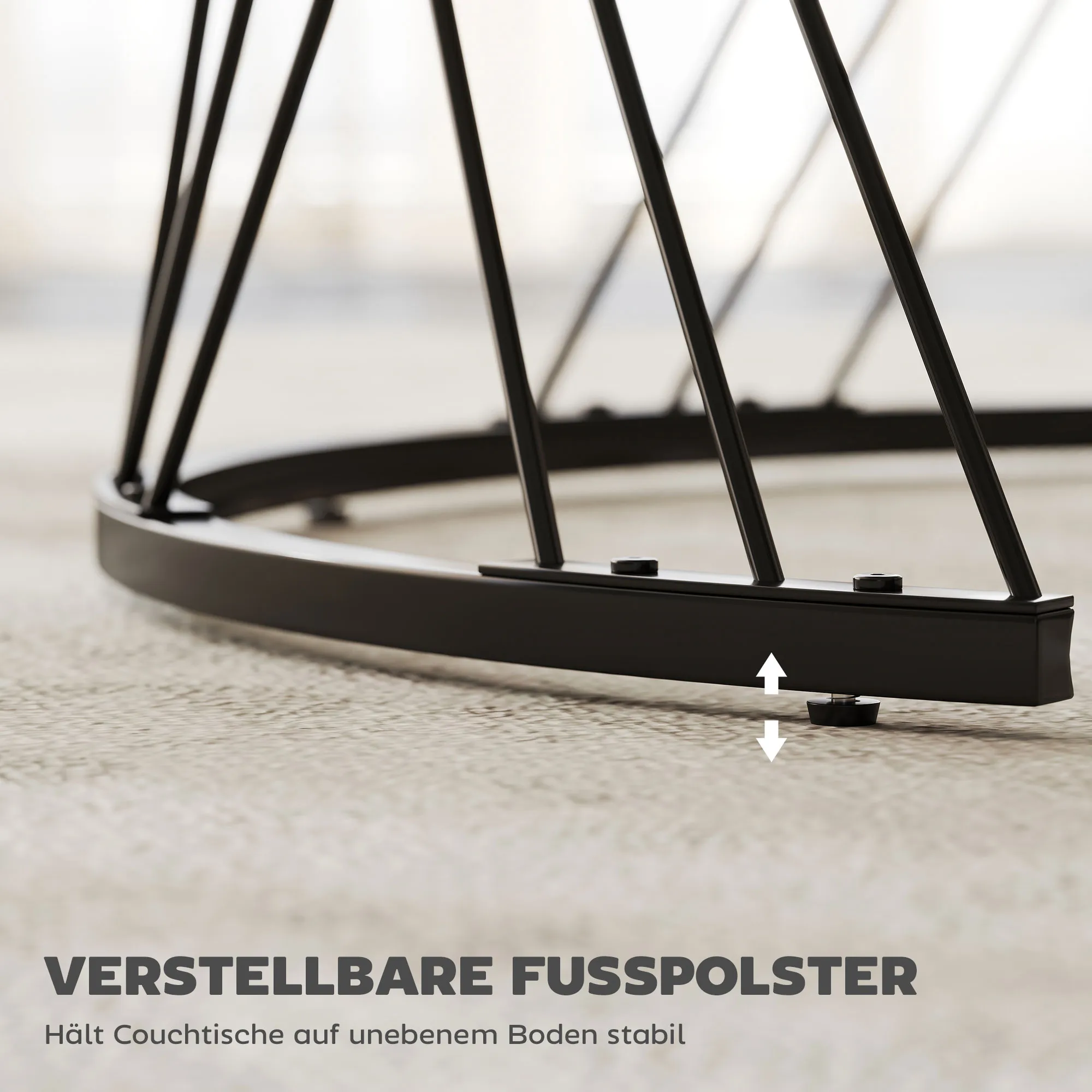 - Verstellbare Fußpads halten die runden Couchtische auf jedem Boden stabil
