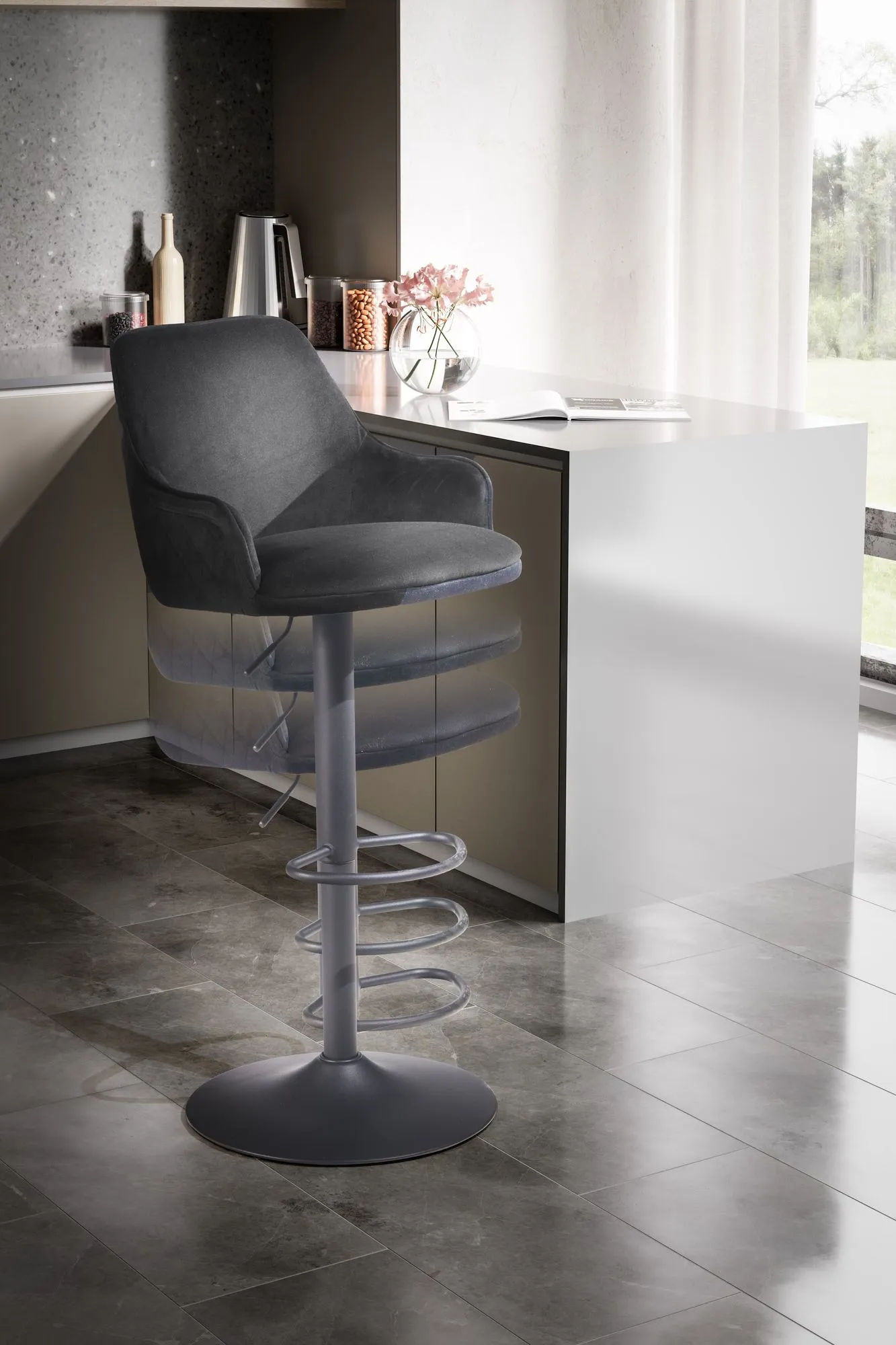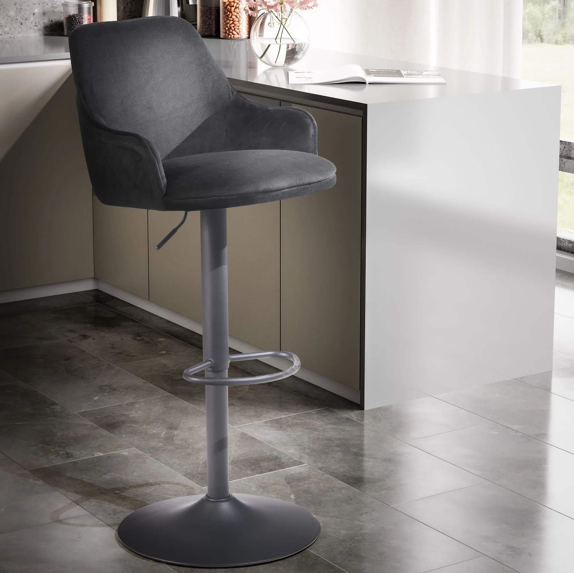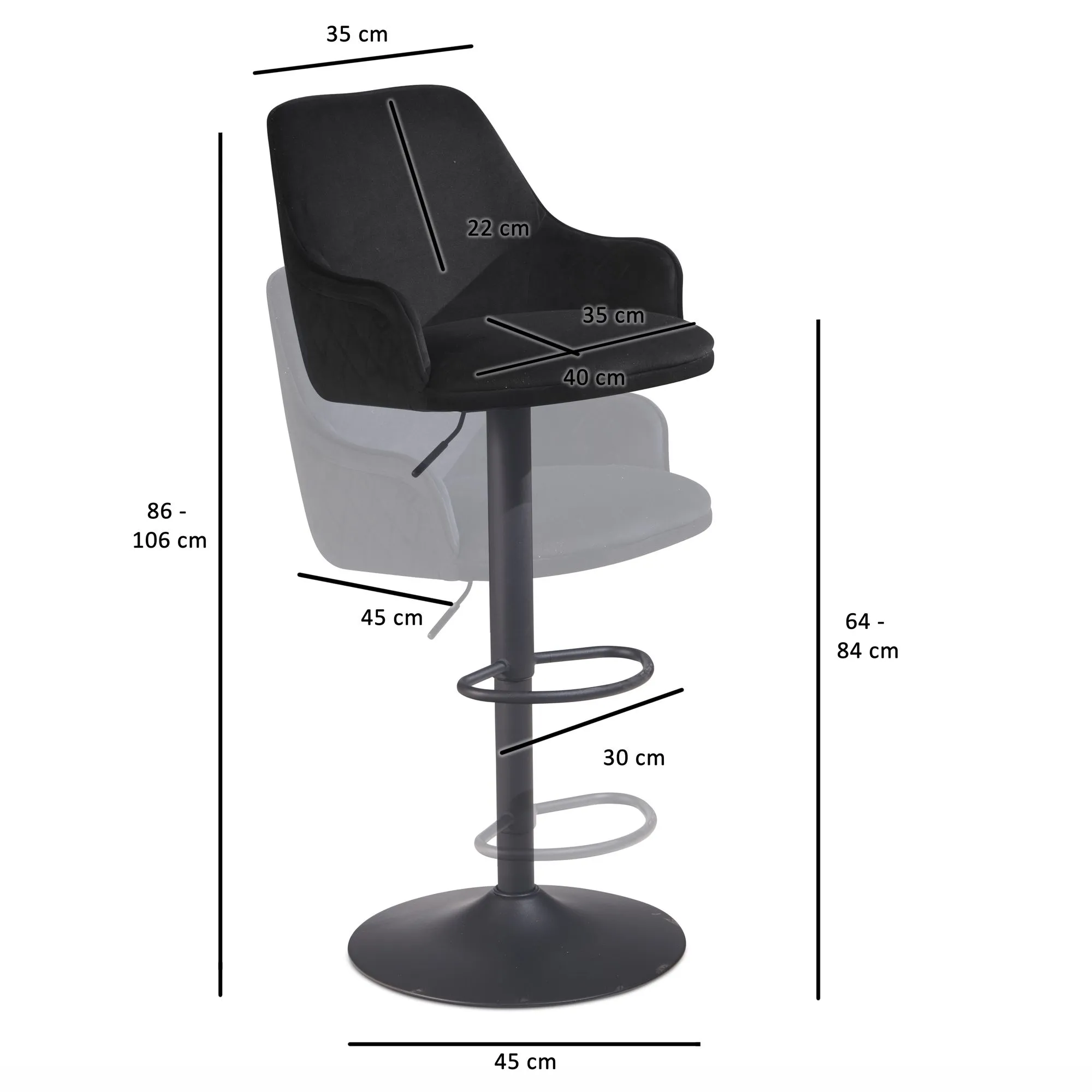 Wohnling Barhocker Samt Schwarz Hocker mit Lehne 86 - 106 cm