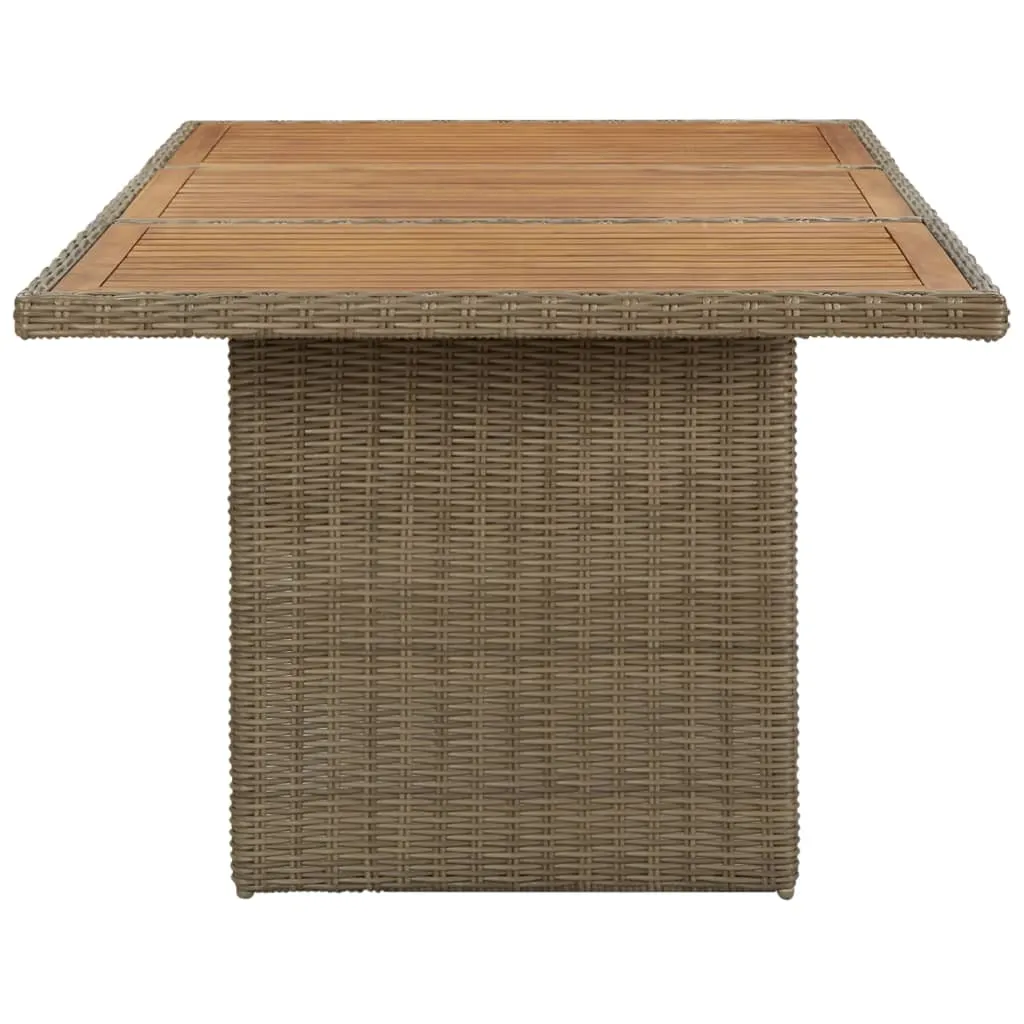 Dieser Garten-Esstisch ist speziell für Ihren Garten oder Ihre Terrasse konzipiert! Der Gartentisch besteht aus PE-Rattan und ist somit wetterbeständig und langlebig. Der pulverbeschichtete Stahlrahmen und die Tischplatte aus massivem Akazienholz machen den Tisch robust und stabil. Dank der Leichtbauweise ist der Tisch auch leicht zu bewegen. Hinweis: Wir empfehlen, den Tisch bei Regen, Schnee und Frost abzudecken, um seine Lebensdauer zu verlängern.