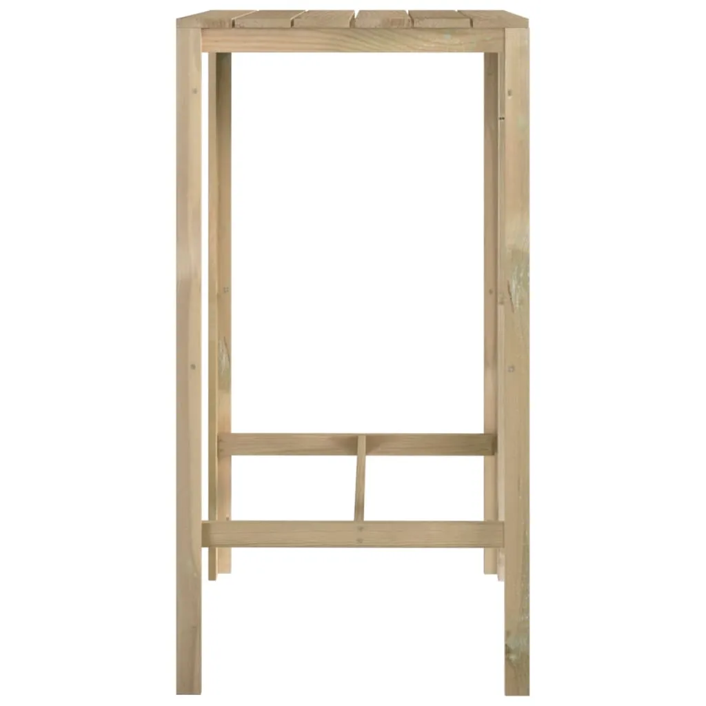 Dieser Bar-Tisch aus Holz mit seinem schlichten Aussehen ist eine großartige Dekoration für Ihren Außenbereich. An diesem schönen Terrassentisch können Sie mit Ihrer Familie oder Ihren Freunden plaudern oder eine gemütliche Mahlzeit einnehmen. Er ist aus imprägniertem Kiefernholz gefertigt, was ihn langlebig und korrosionsbeständig macht. Der Gartentisch ist daher für den Einsatz im Freien geeignet. Das schlichte Design des Bartisches macht ihn zu einem zeitlosen Accessoire für Ihren Garten. Außerdem kann er auch im Innenbereich verwendet werden. Hinweis: Um die Lebensdauer Ihrer Gartenmöbel zu verlängern, empfehlen wir Ihnen, diese regelmäßig zu reinigen und im Freien vor Niederschlägen oder starken Sonnenstrahlen zu schützen.Reinigung: Verwenden Sie eine milde Seifenlösung.Lagerung: Wenn möglich, an einem kühlen, trockenen Ort im Innenbereich lagern. Wenn das Produkt im Freien gelagert wird, schützen Sie es mit einer wasserdichten Abdeckung. Wischen und trocknen Sie das überschüssige Wasser oder den Schnee nach Regen oder Schneefall von ebenen Flächen. Sorgen Sie für eine ausreichende Luftzirkulation, um feuchtigkeitsbedingte Schäden zu vermeiden.