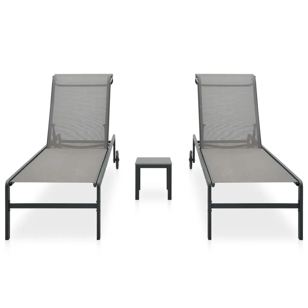 Sonnenliegen 2 Stk. mit Tisch Textilene und Stahl