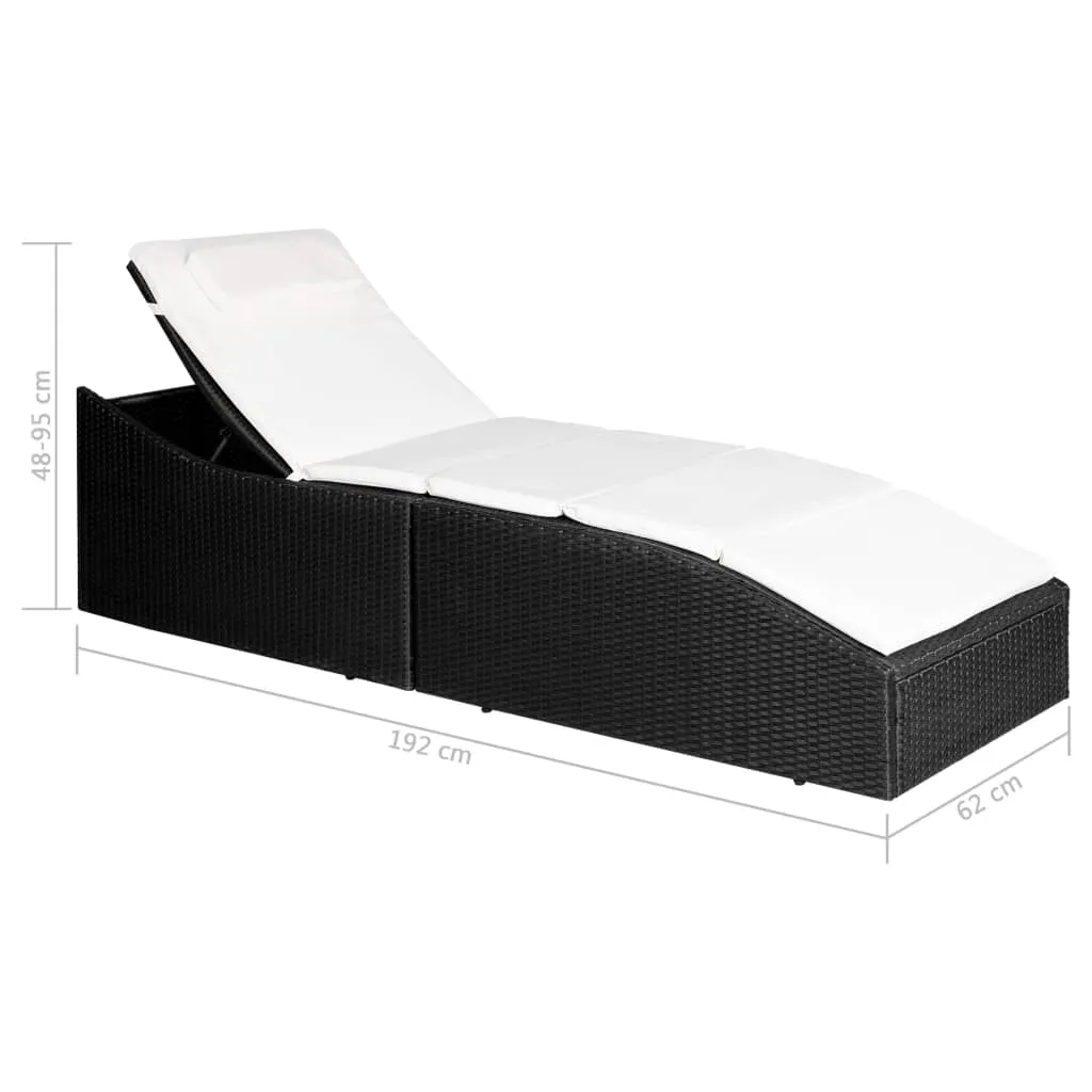 Sonnenliege mit Polsterauflage Poly Rattan Schwarz
