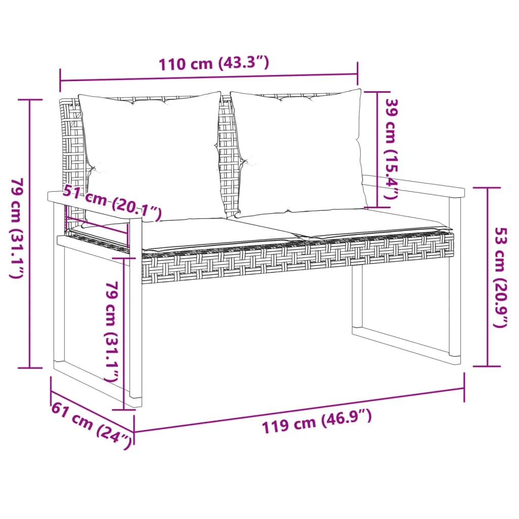 - Sitzkissen-Abmessungen: 110 x 51 x 3 cm (L x B x D)