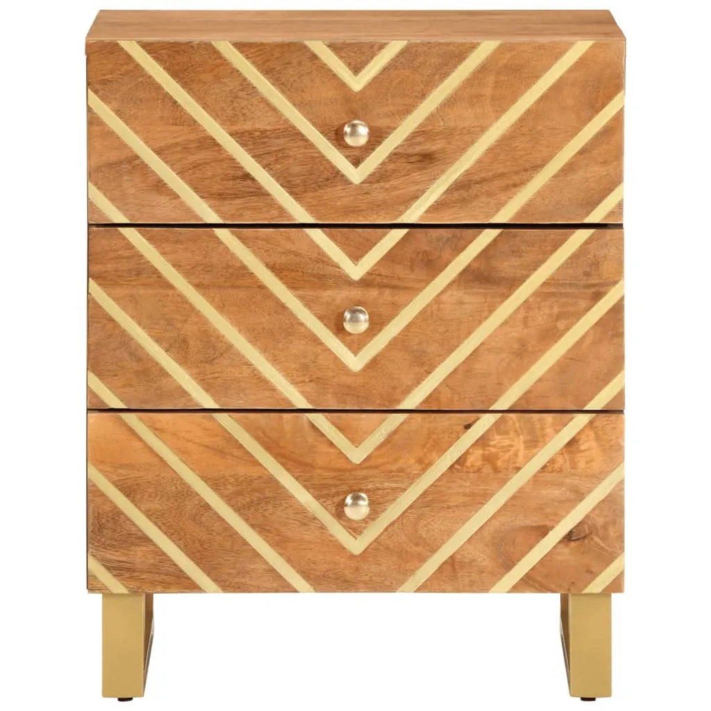 Dieser Nachttisch mit elegantem Design ist eine zeitlose Ergänzung deiner Inneneinrichtung. Massives Mangholz: Massives Mangoholz ist ein robustes, tropisches Hartholz, aus dem sich robuste Möbel herstellen lassen. Seine optisch ansprechende Holzmaserung macht jedes Möbelstück zu einem Unikat. Der Schrank ist aus massivem Mangoholz gefertigt und daher langlebig und stabil.Viel Stauraum: Der Nachttisch ist mit 3 Schubladen ausgestattet, um verschiedene Sachen ordentlich und griffbereit aufzubewahren.Stabile Oberplatte: Die Oberplatte des Beistellschranks bietet den perfekten Platz, um Dekoartikel, Bilderrahmen und Topfpflanzen zur Schau zu stellen.Starke Beine: Die Eisenbeine tragen zur Robustheit und Stabilität der Nachtkommode bei. Achtung:Um ein Umkippen zu vermeiden, sollte dieses Produkt mit der mitgelieferten Wandhalterung gesichert werden.