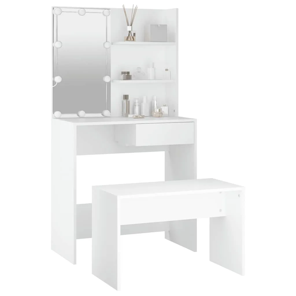 Schminktisch-Set mit LED Weiß Holzwerkstoff