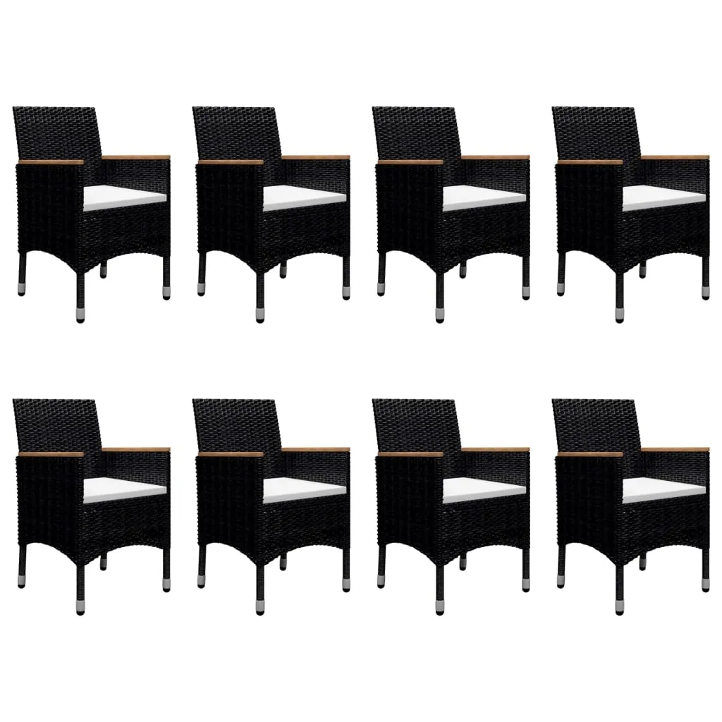 9-tlg. Garten-Essgruppe Poly Rattan und Akazienholz Schwarz