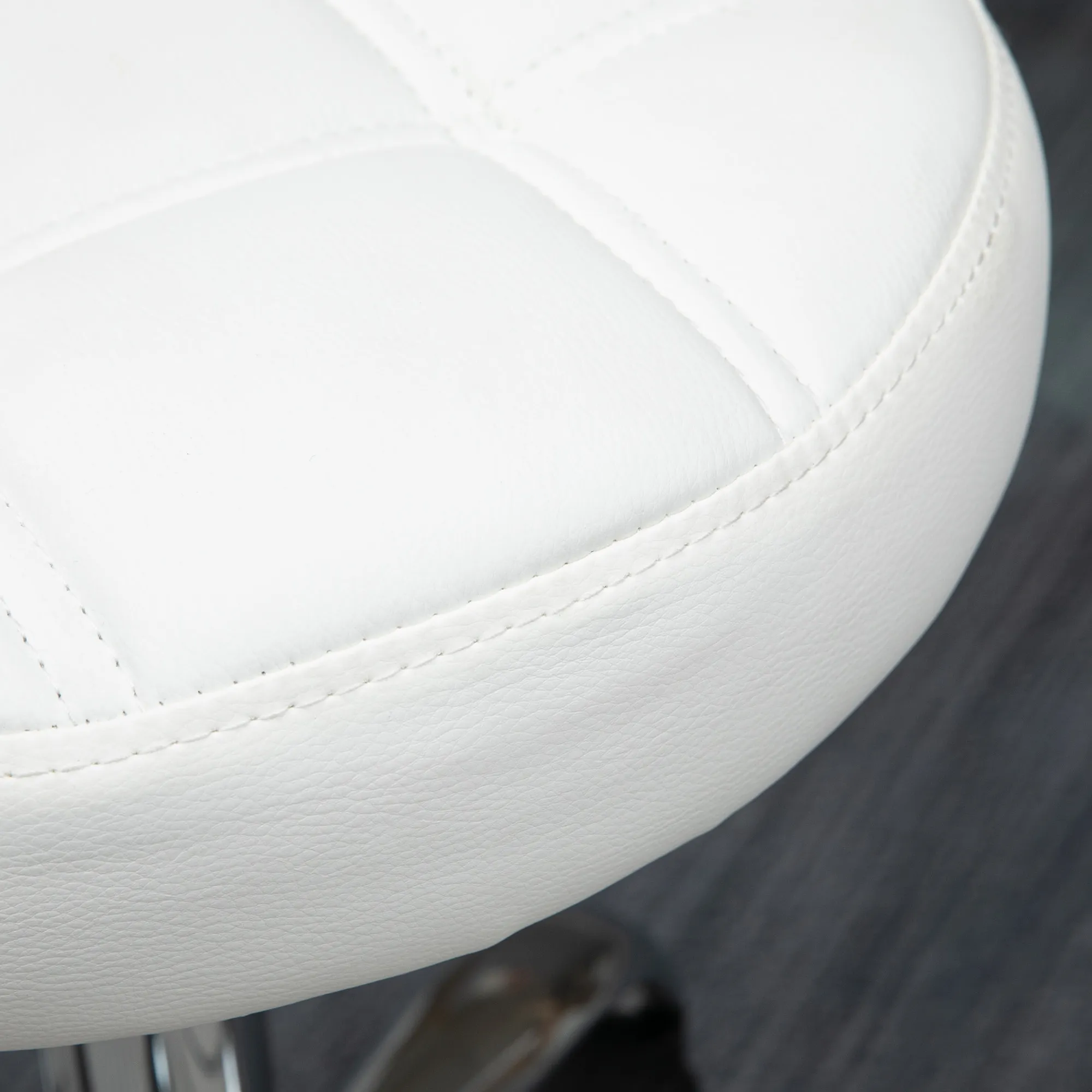 Sind Sie auf der Suche nach einem praktischen, platzsparenden und bequemen Rollhocker? Dieser höhenverstellbare Salonhocker von ist ideal in jeder Hinsicht. Dank seines armlosen, drehbaren Designs genießten Sie uneingeschränkte Bewegungsfreiheit. Wenn nicht gebraucht, lässt er sich einfach unter einem Tisch verbergen, ohne Platz zu beanspruchen. Der voll gepolsterte Sitz, bezogen mit Kunstleder, bietet höchsten Komfort und das elegante Steppmuster verleiht ihm eine ansprechende Optik.