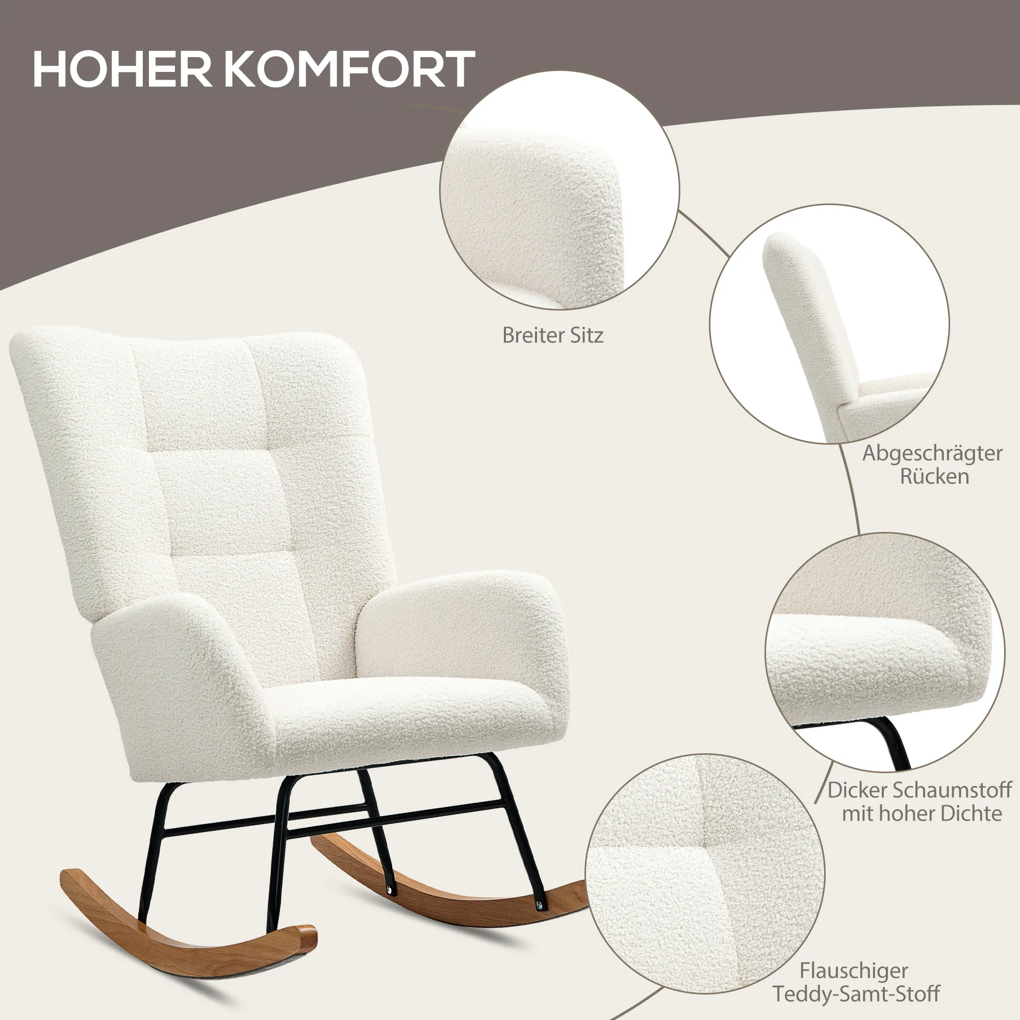 Eleganter Schaukelstuhl 70B x 94T x 100H cm in Cremeweiß