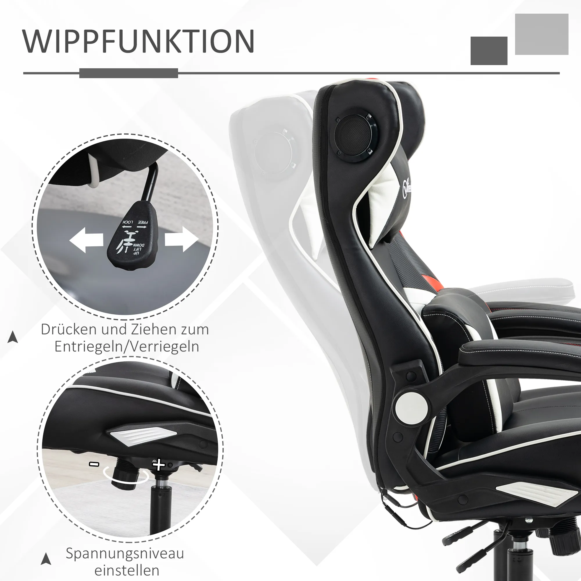Ergonomischer Gaming Stuhl Weiß+Schwarz 69L x 73B x 112-118H cm