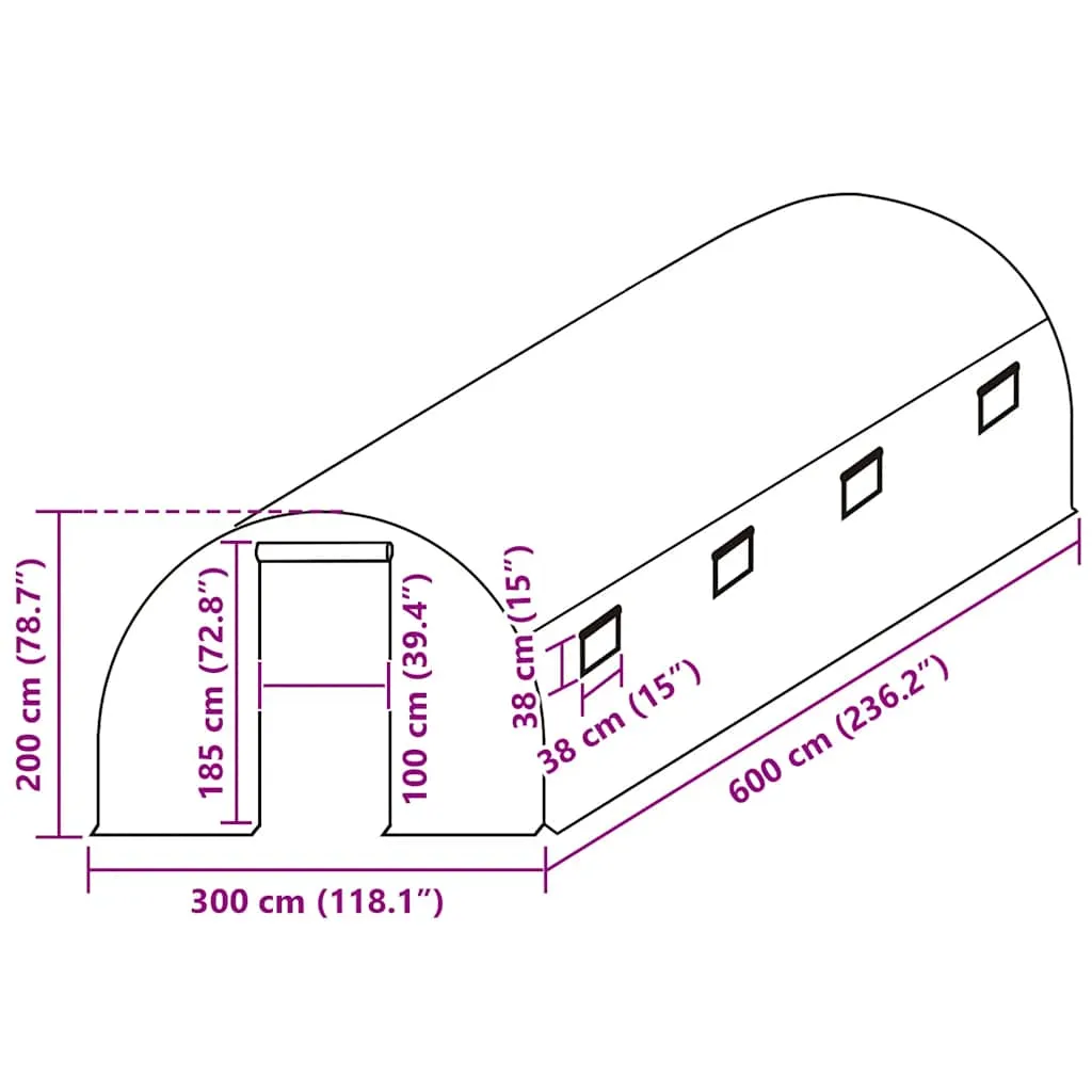 Die Plane ist mit acht praktischen Seitenfenstern ausgestattet, die für eine optimale Belüftung sorgen, sowie einer großzügigen Tür, die den Zugang erleichtert. So bleibt das Klima im Gewächshaus stets ideal für das Wachstum Ihrer Pflanzen.
