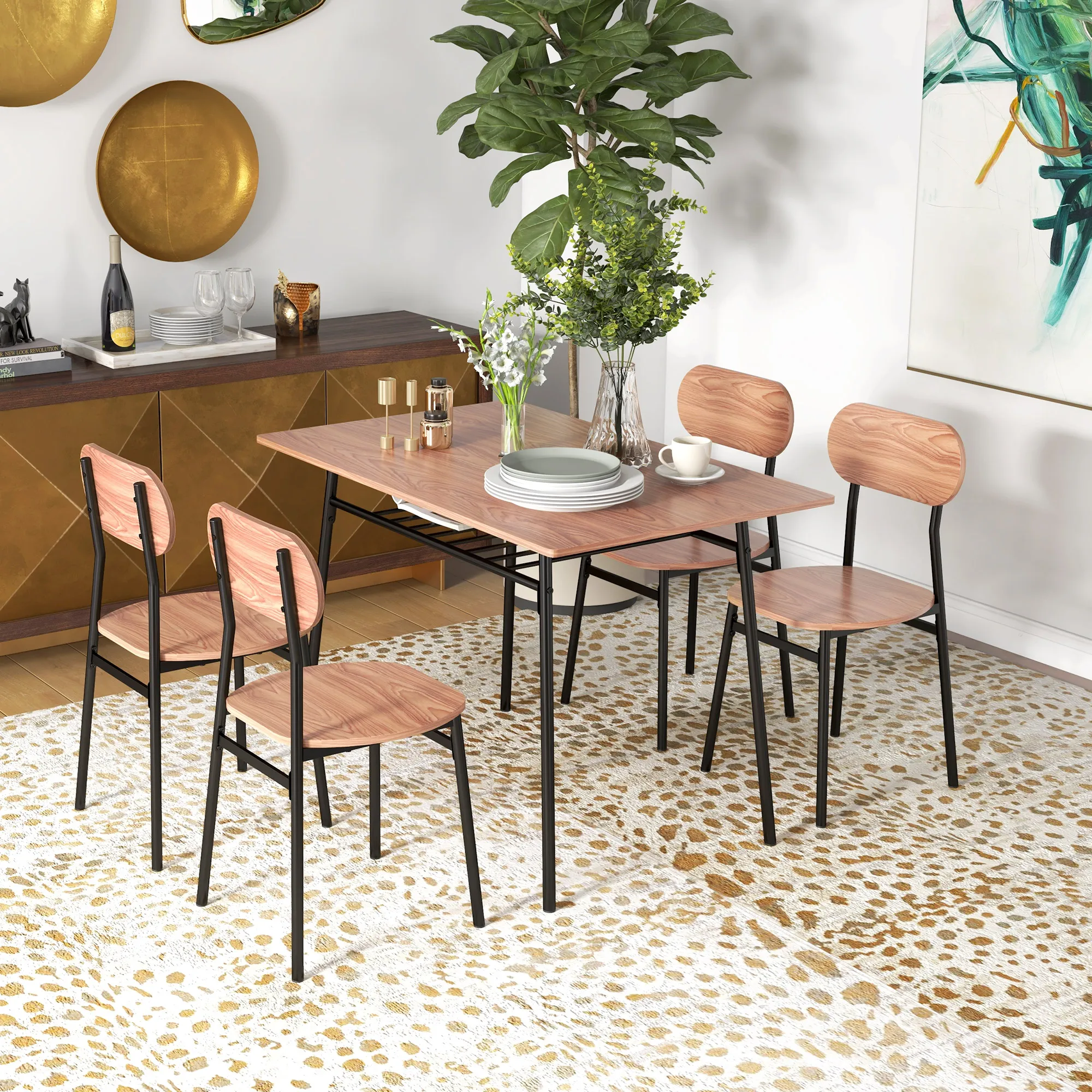 Unser Esstisch Set von verleiht Ihrem Esszimmer einen Hauch von Stil und dient als eleganter Mittelpunkt für Familienessen und Treffen mit Freunden. Der geräumige rechteckige Tisch bietet Platz für Ihr Geschirr, während das Metallregal unter dem Tisch zusätzlichen Stauraum bietet. Der kleine Tisch und die Stühle stehen auf massiven Stahlbeinen und strahlen Stabilität und Qualität aus. Tauchen Sie ein in die perfekte Mischung aus Stil, Qualität und Komfort mit unserem Esszimmermöbel.