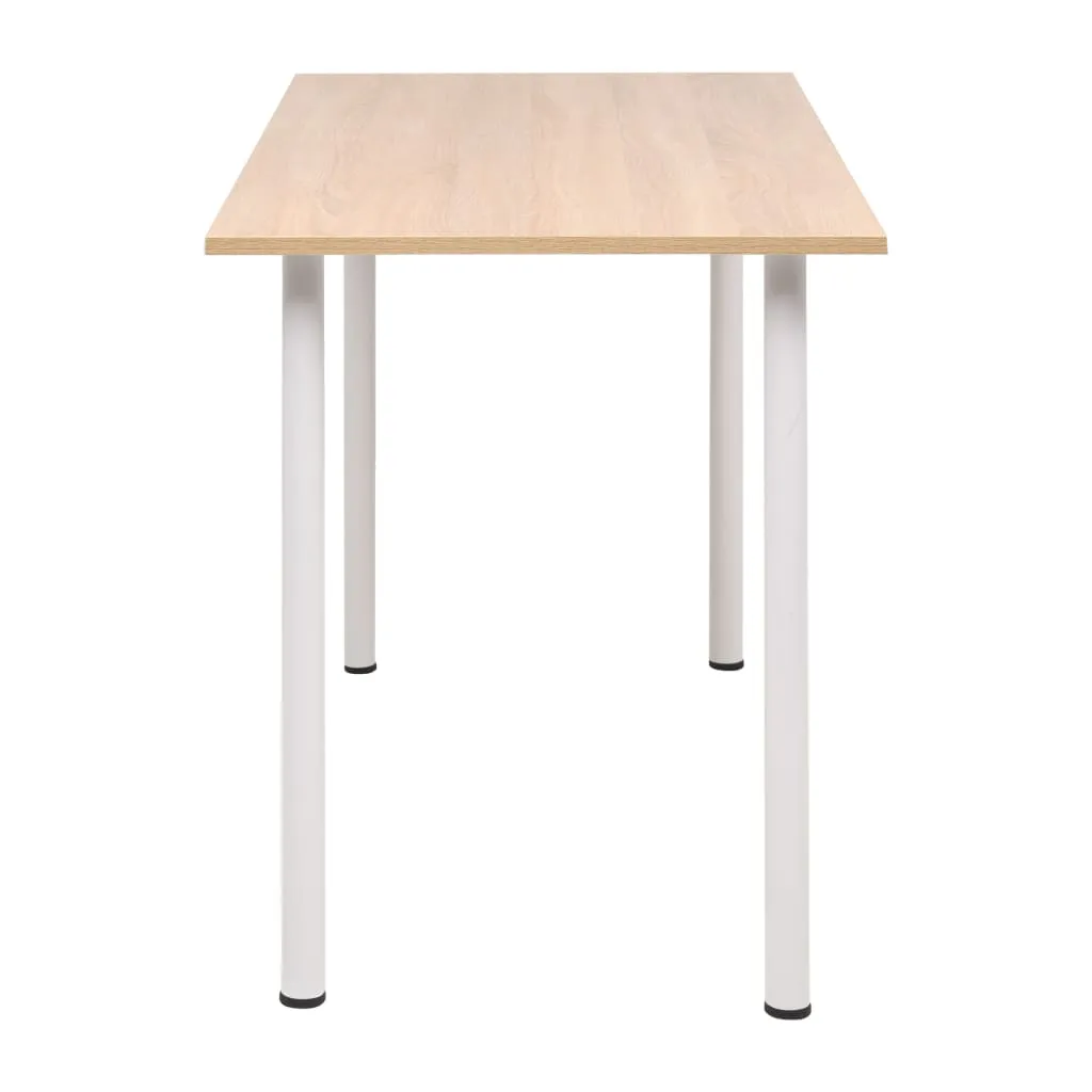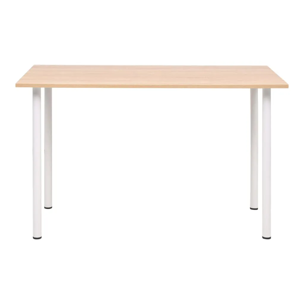 Dieser moderne Esstisch wird eine schöne Ergänzung für Ihre Küche oder Ihr Esszimmer sein. Der Tisch verfügt über eine Tischplatte aus Holzwerkstoff und Beine aus Stahl, wodurch er robust, langlebig und pflegeleicht ist. Sein einfaches und dennoch stilvolles Design verleiht jeder Einrichtung ein sauberes und gepflegtes Aussehen. Der Tisch lässt sich dank seiner Melaminbeschichtung einfach mit einem feuchten Tuch reinigen. Der Esstisch lässt sich einfach zusammenbauen.