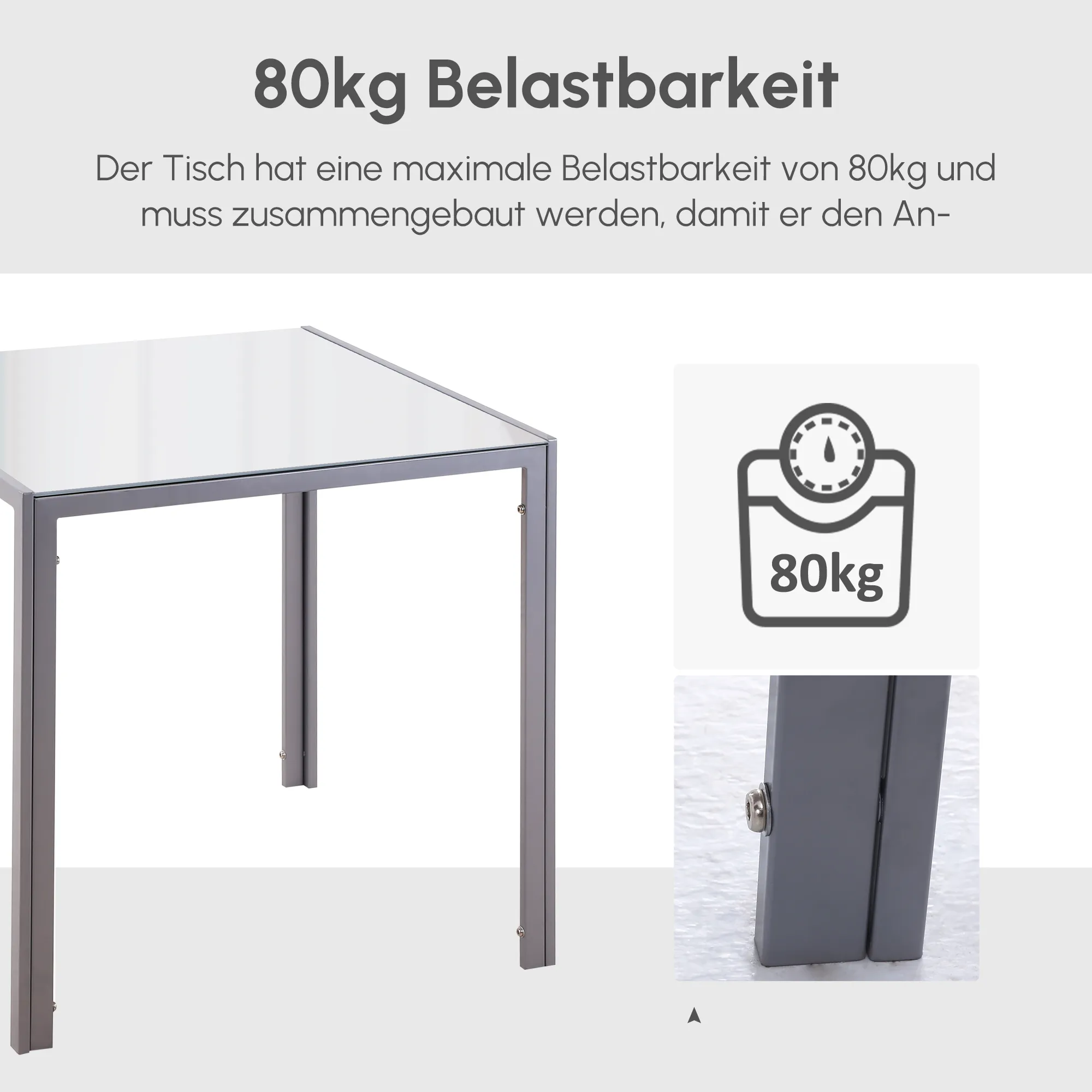 Esstisch Küchentisch Glastisch Quadratischer Tisch, Glasplatte, kompaktes Design, Grau