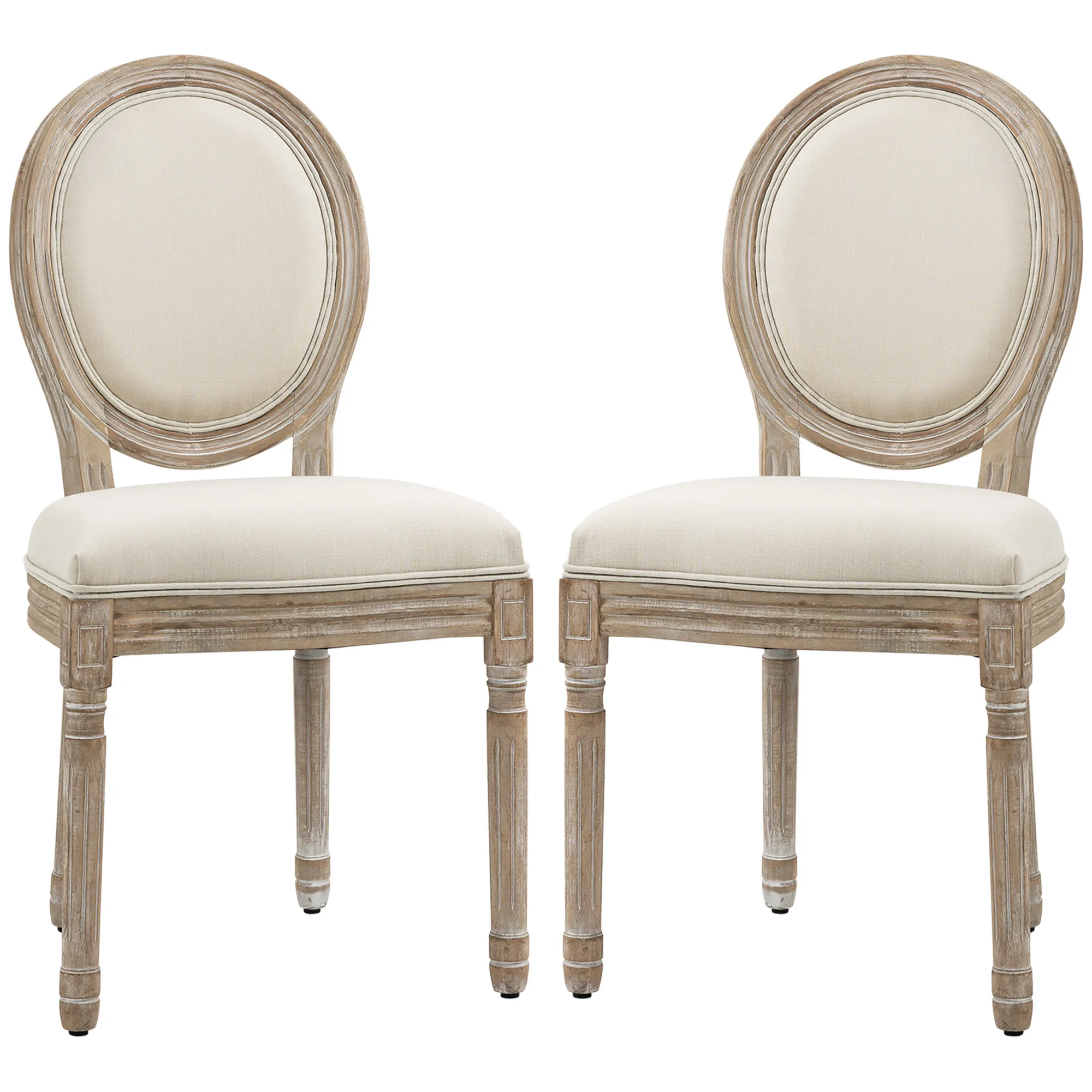 Esszimmerstühle 2er Set Küchenstuhl mit Rückenlehne, Linenoptik, Sessel Polsterstuhl, Stühle, Wohnzimmerstuhl mit Holzbeine für Esstisch, Cremeweiß+Natur