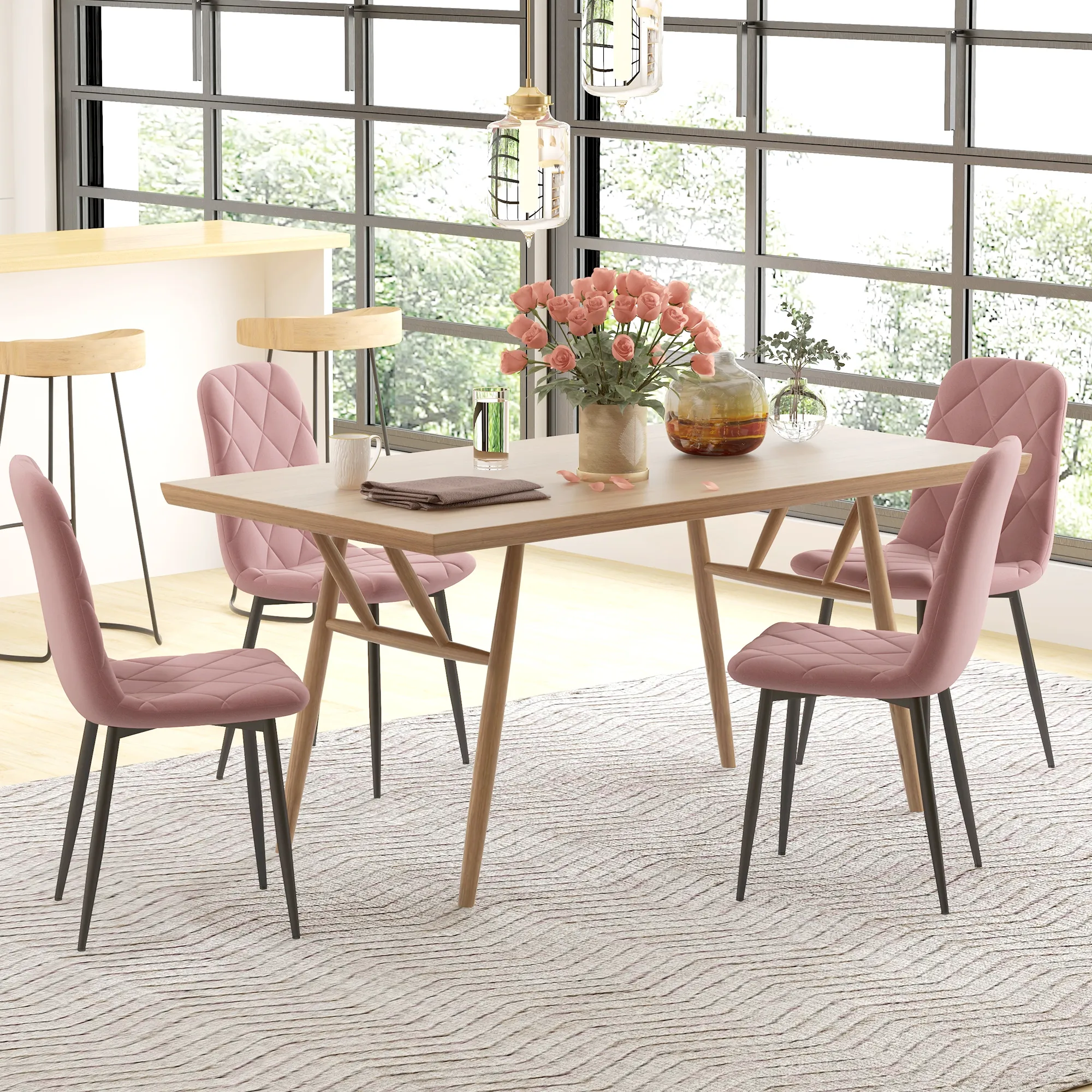 Esszimmerstühle 4er Set Küchenstuhl mit Rückenlehne, Samtoptik, Sessel 45 x 54 x 87 cm Rosa