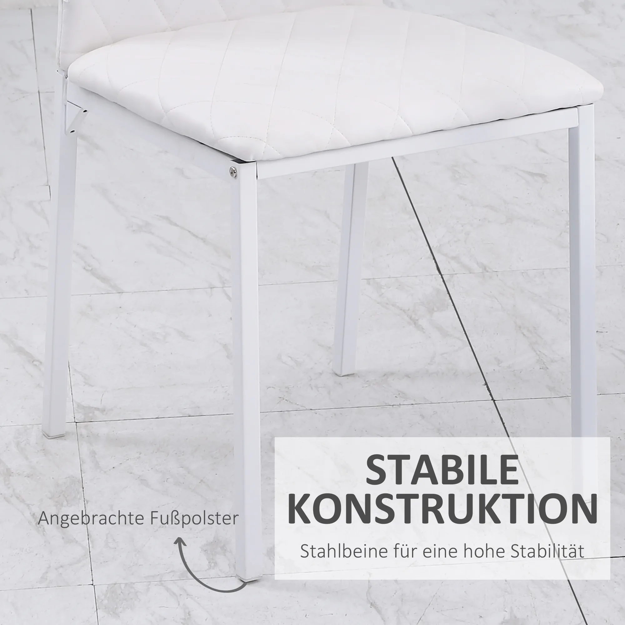 Esszimmerstühle im 4er-Set, Küchenstuhl mit Rückenlehne, Kunstleder, Wohnzimmerstuhl mit Fußpolster, Stühle, Polsterstuhl mit Metallbeinen für Esstisch, Weiß