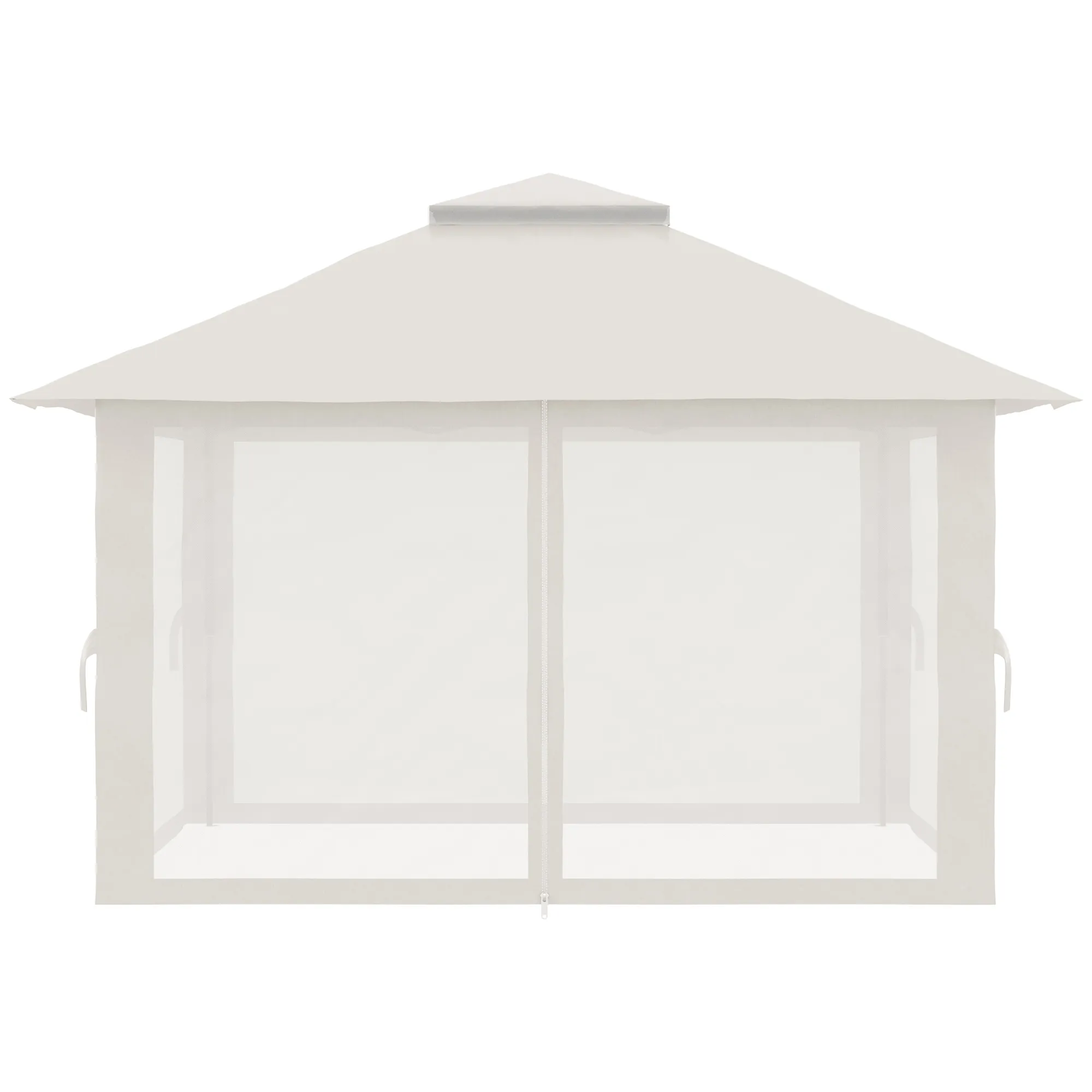 Faltpavillon, höhenverstellbar, 4 Netzwände, Lüftungsdach, Tragetasche, Schnellaufbau, 4 x 4 x 3 m, Cremeweiß