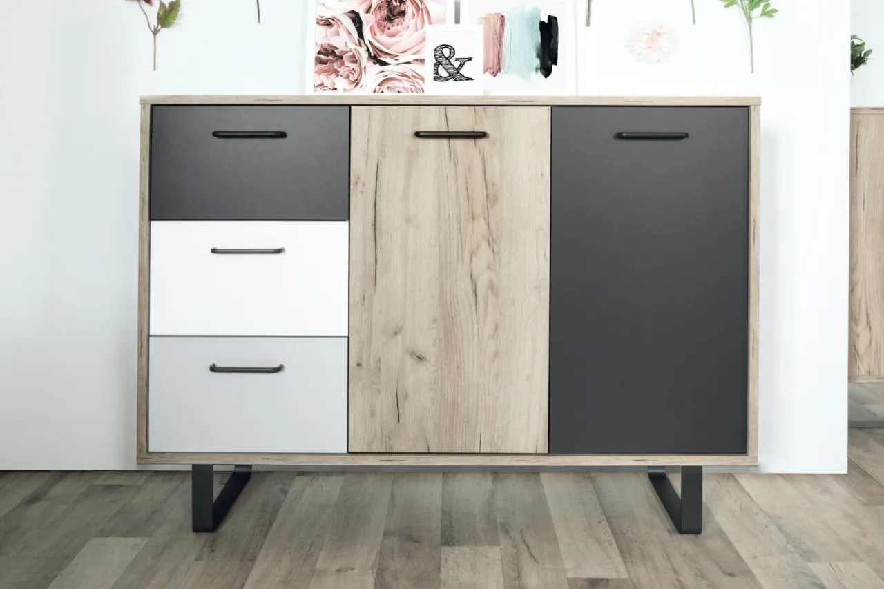 finori Orlando 2834 Kommode Dekor Grey Craft Oak / Farbmix foliert kleines Sideboard Wonbereich