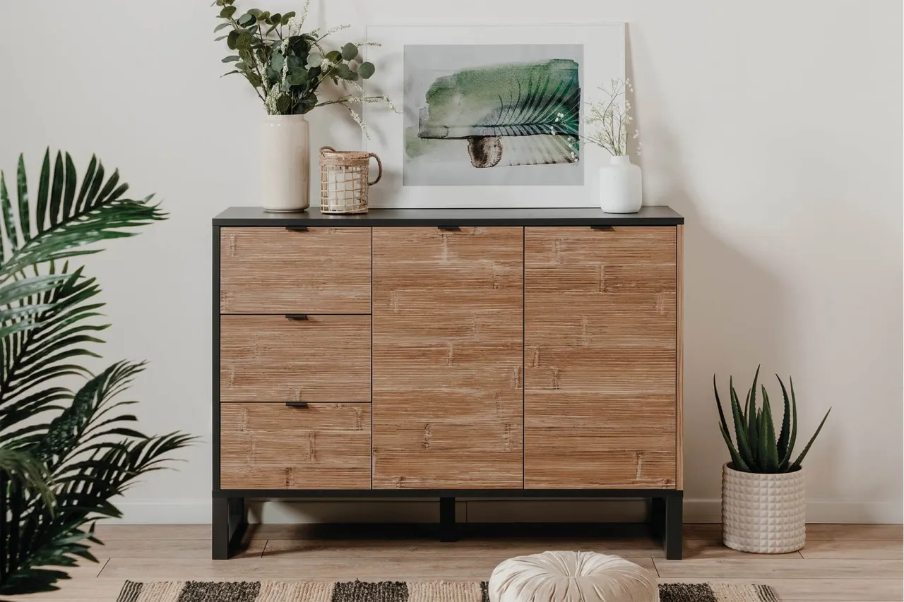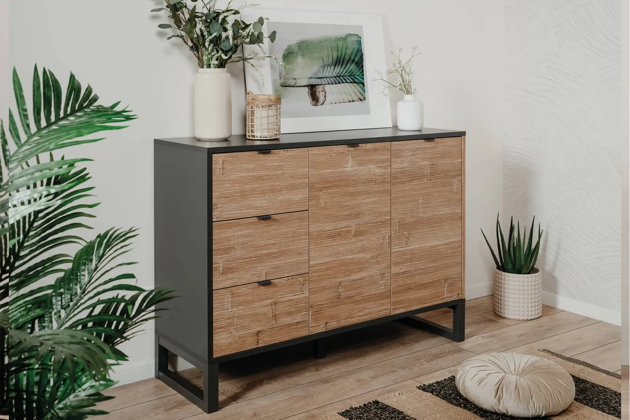finori Kommode Sumatra Anthrazit / Bambus Sideboard Industrial Look Kommode