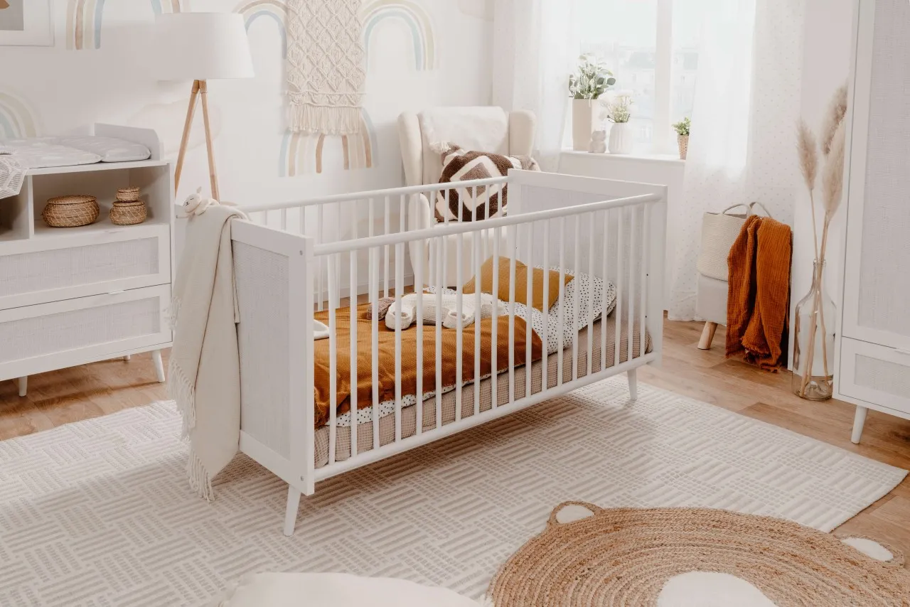 finori Babybett Dili weiß/Rafia Geflecht mit Liegefläche 70 x 140 cm modern Kinderzimmer