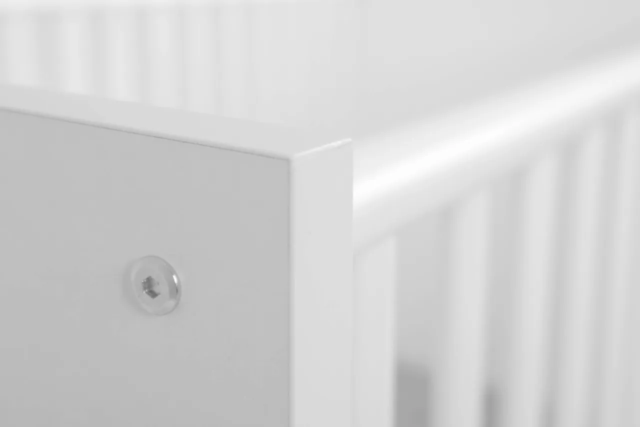 Das Babybett Image im Dekor Weiß bietet eine sichere und stilvolle Schlaflösung für Ihr Baby. Mit einer Liegefläche von 60 x 120 cm und einem 3-fach höhenverstellbaren Lattenrost passt sich das Bett den Bedürfnissen Ihres wachsenden Kindes an. Die 3 herausnehmbaren Gitterstangen und die ABS-Kante Melaminbeschichtung bieten zusätzliche Sicherheit und Stabilität. Hergestellt in Europa, überzeugt das Babybett durch hohe Materialqualität und Verarbeitung.