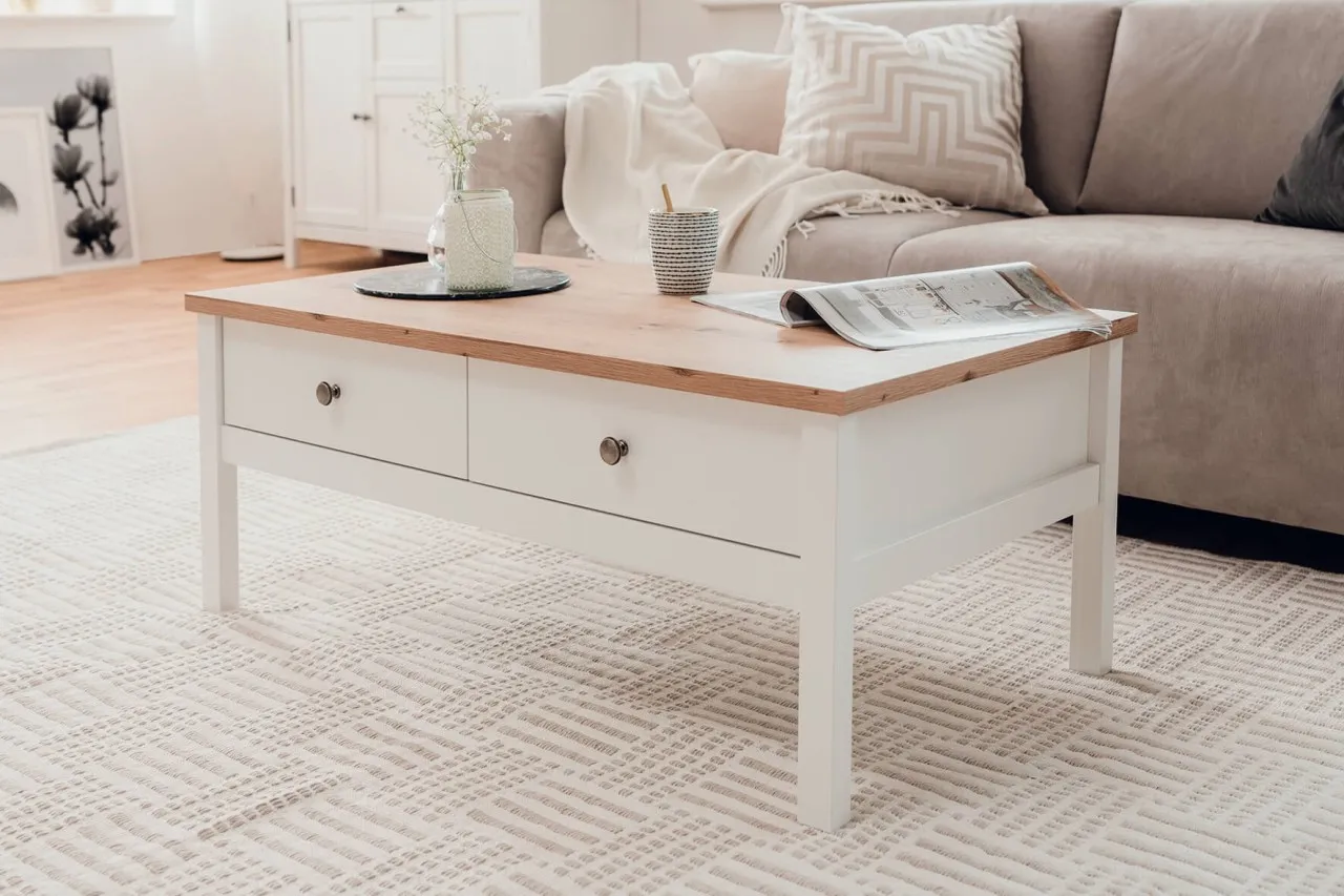 finori Bergen 2874 Couchtisch weiß Dekor Artisan Oak foliert Sofa- und Kaffeetisch kleiner Wohnzimmertisch