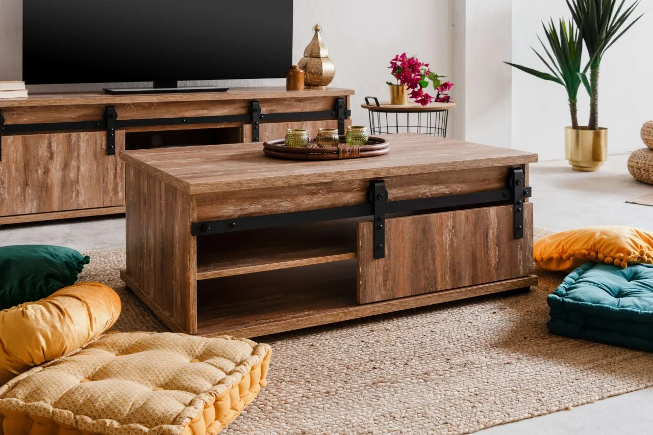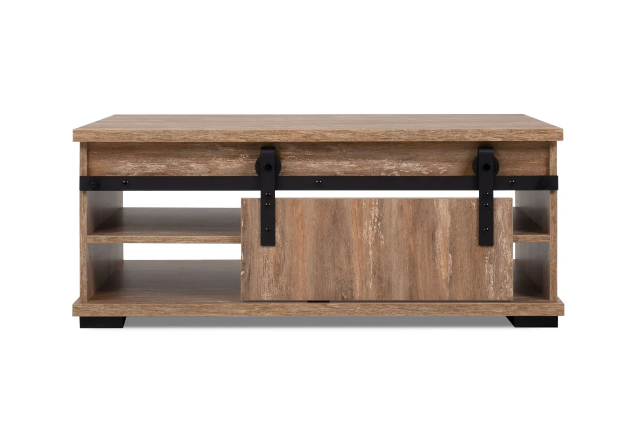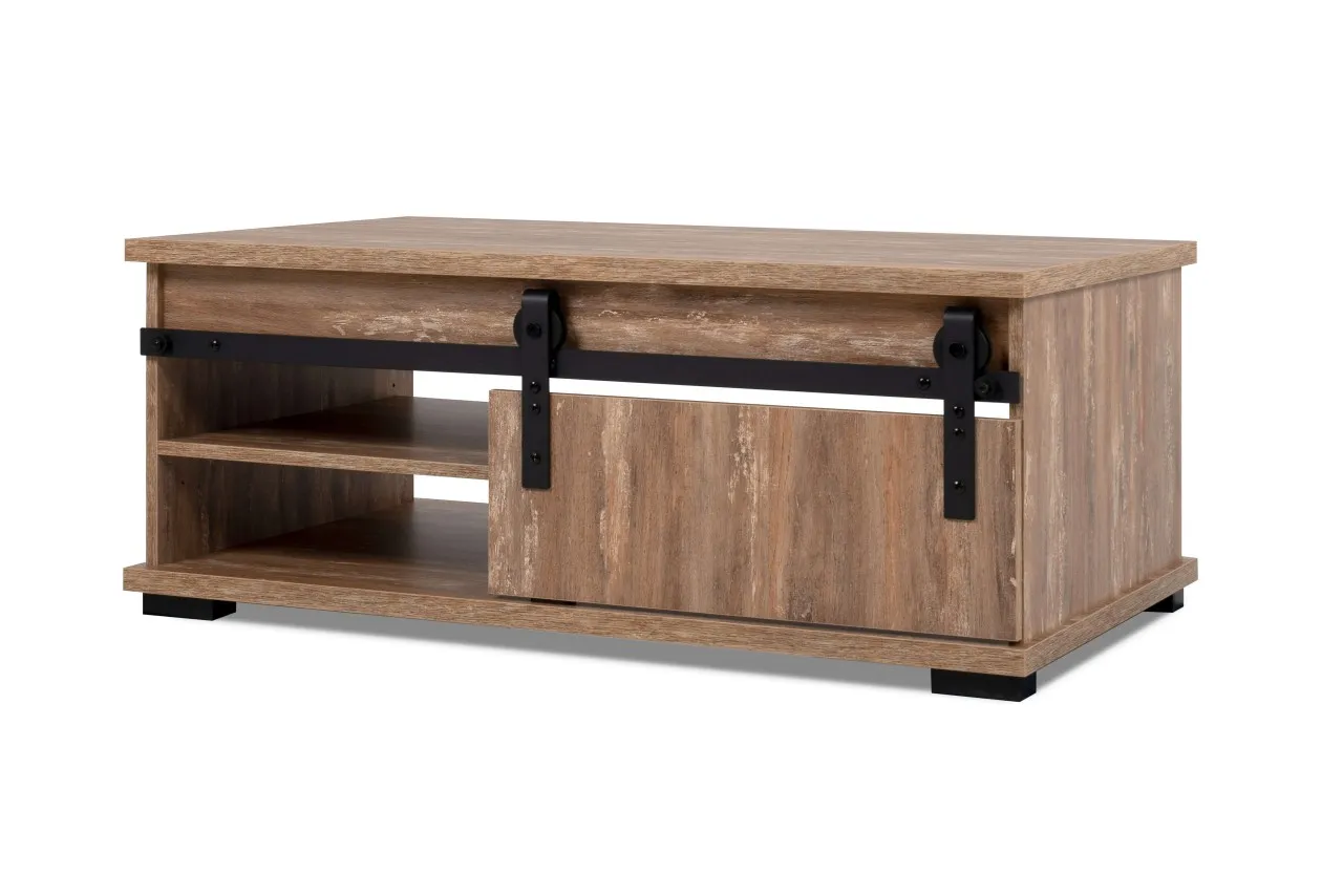 finori Couchtisch Marrakesch Valhalla Eiche / Milford Kiefer mit Schiebetür und offenen Fächern