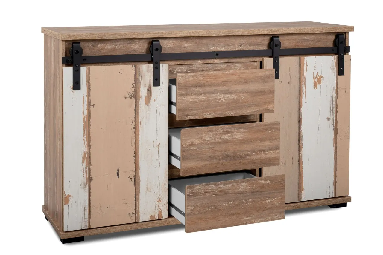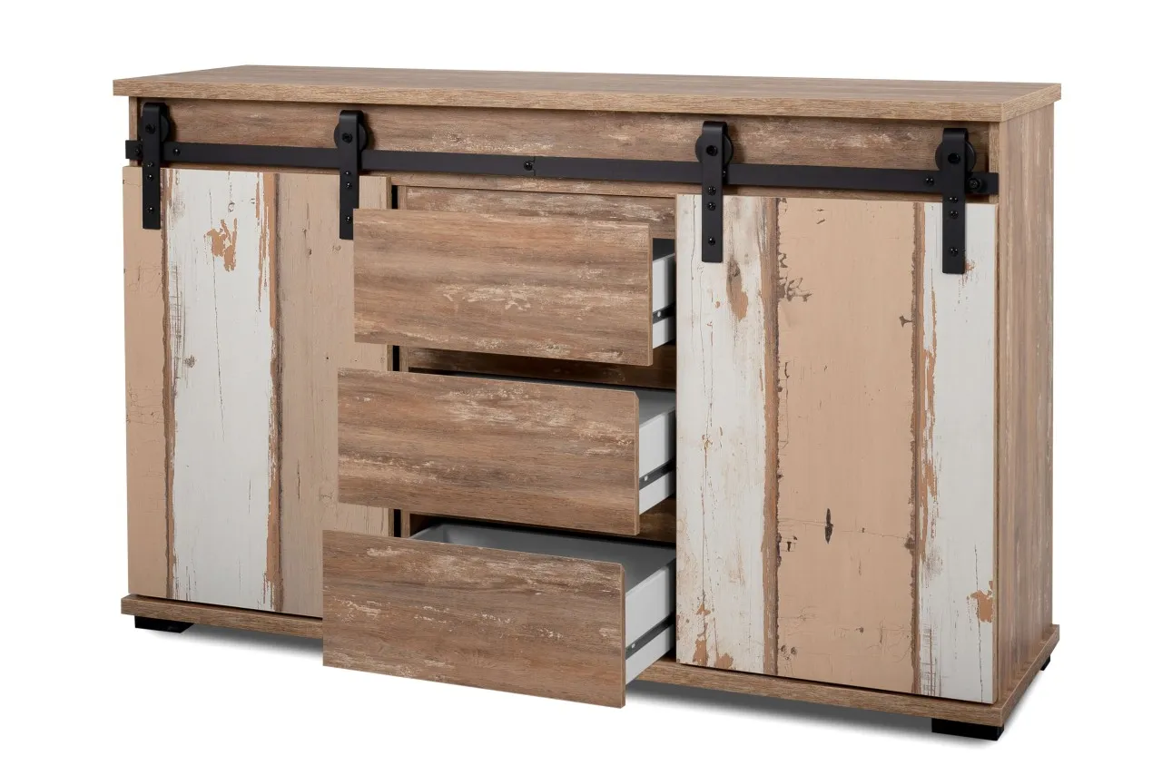 finori Kommode Marrakesch Valhalla Eiche / Milford Kiefer mit Schiebetüren und Schubkästen