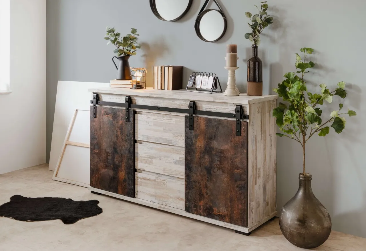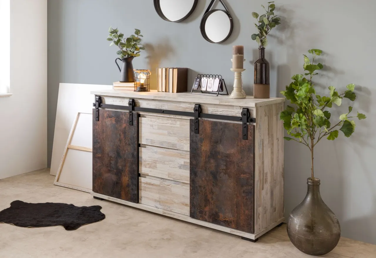 finori Kommode Sevilla Aratinga Kiefer / Na Pali mit Schiebetüren und Schubkästen