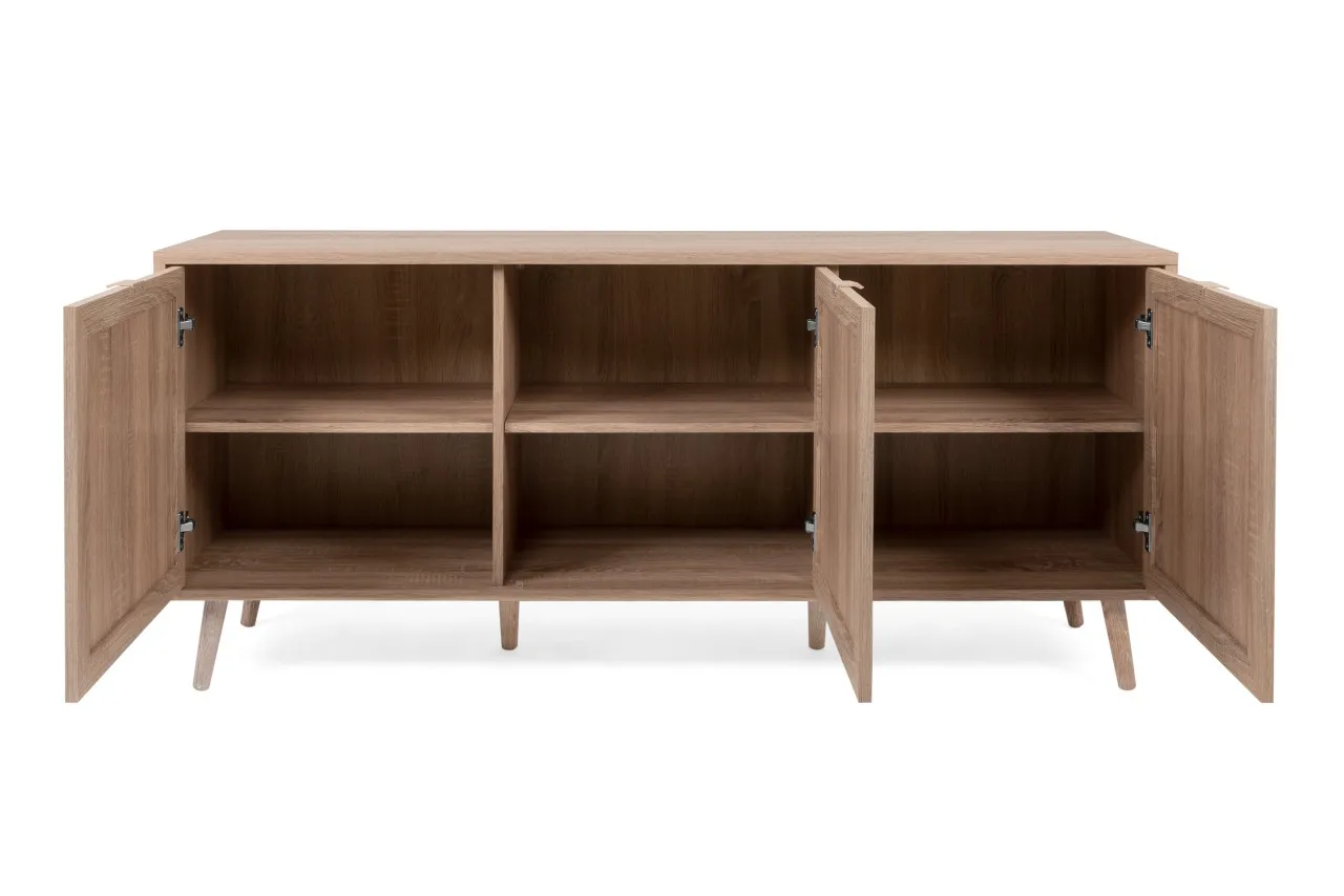 finori Sideboard Bali 150 cm Dekor Sonoma Eiche & Rafia Geflecht Kommode